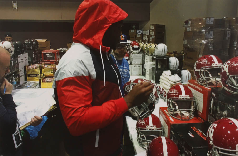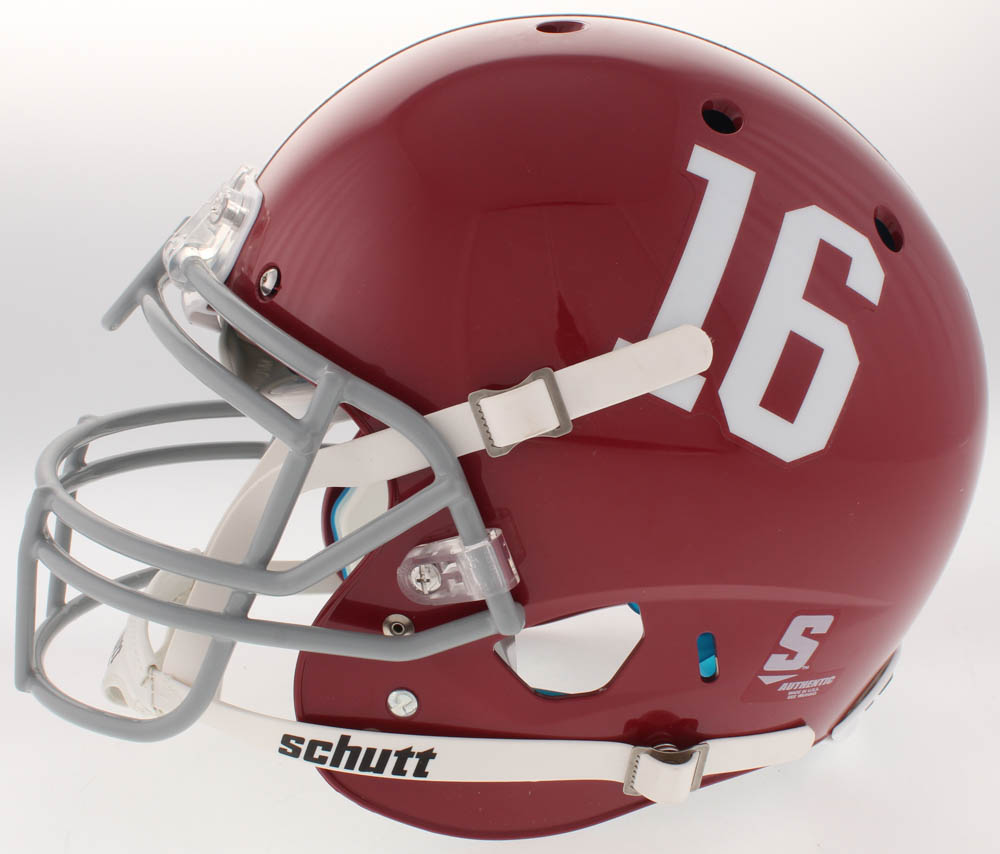 Schutt Alabama Crimson Tide full-size authentic on-field helmet. Hand-signed and inscribed in white paint pen by Derrick Henry and Mark Ingram.