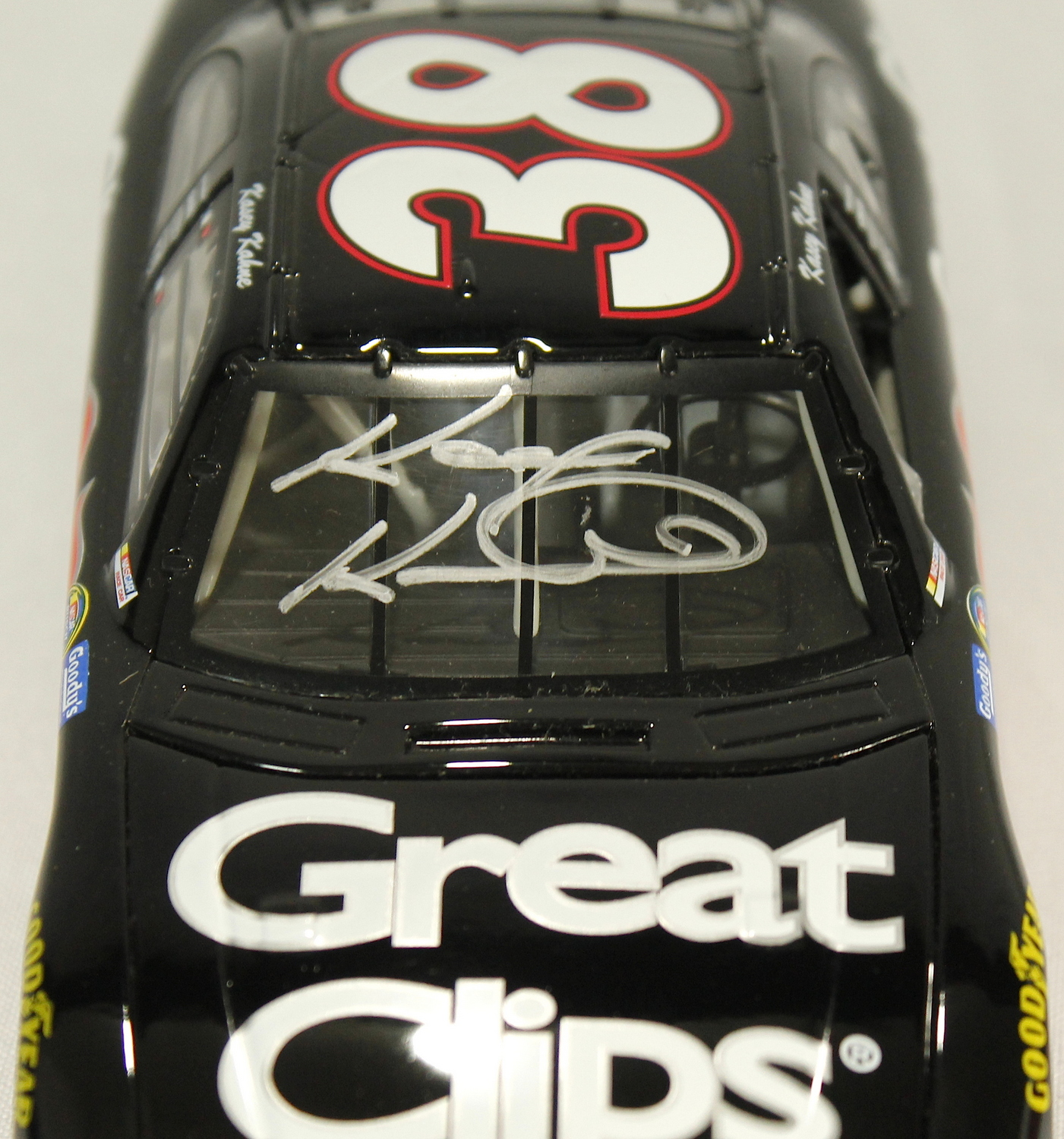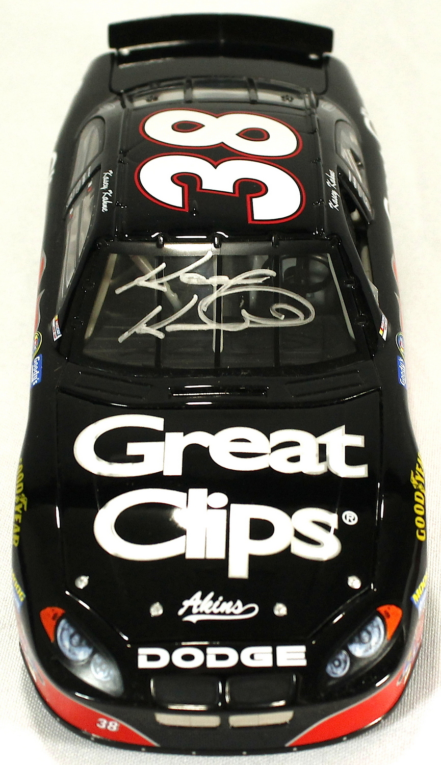 Action 1:24 Die Cast #38 Great Clips 2004 Intrepid car. Hand-signed in silver paint pen by Kasey Kahne. The autograph includes an LOA and lifetime authenticity guarantee from Pristine Auction.
