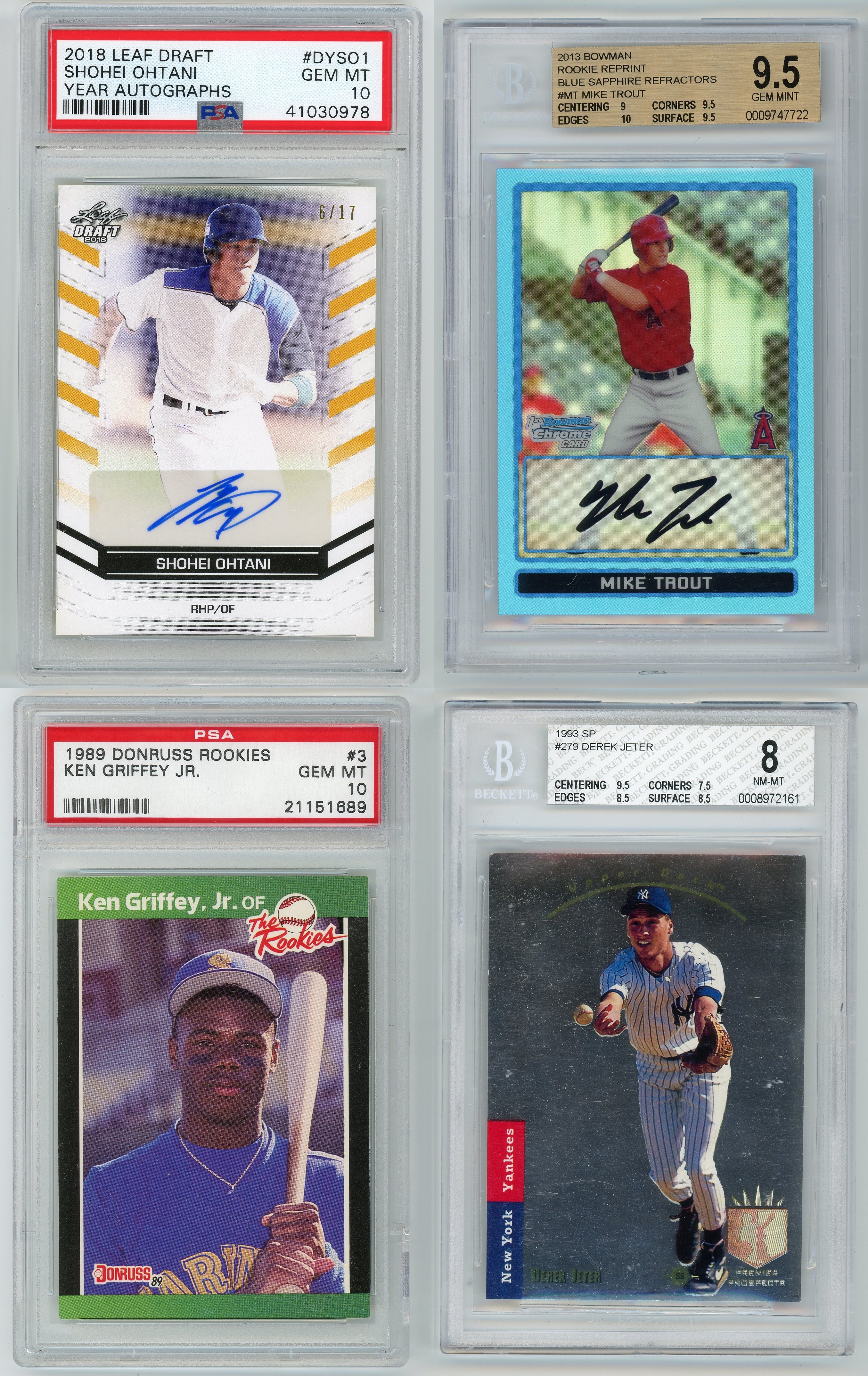(6) Ungraded Premium Hits, including rookies (Jeter, Ohtani, Judge, Griffey, Trout), Vintage (Aaron, Mays, Mantle, Aaron), Game Used Cards, Autographs, Serial Numbered and more!