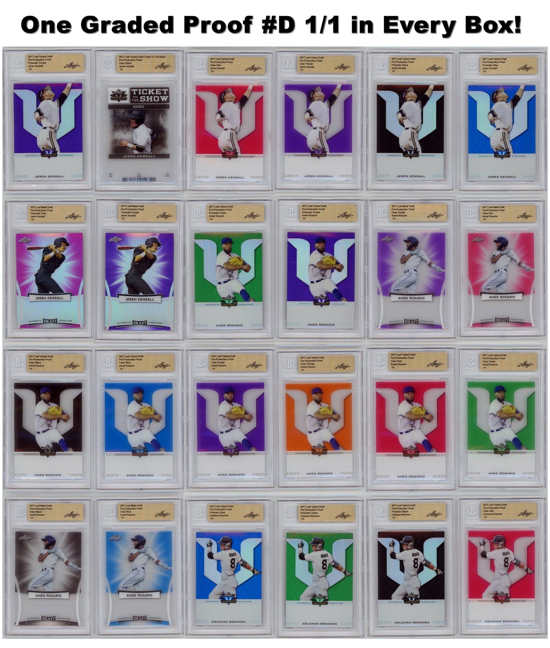 (1) Leaf Pre-Production Proof #d 1/1 (BGS) of an up and coming rookie or star! A Serial #d 1/1 rookie in every box!