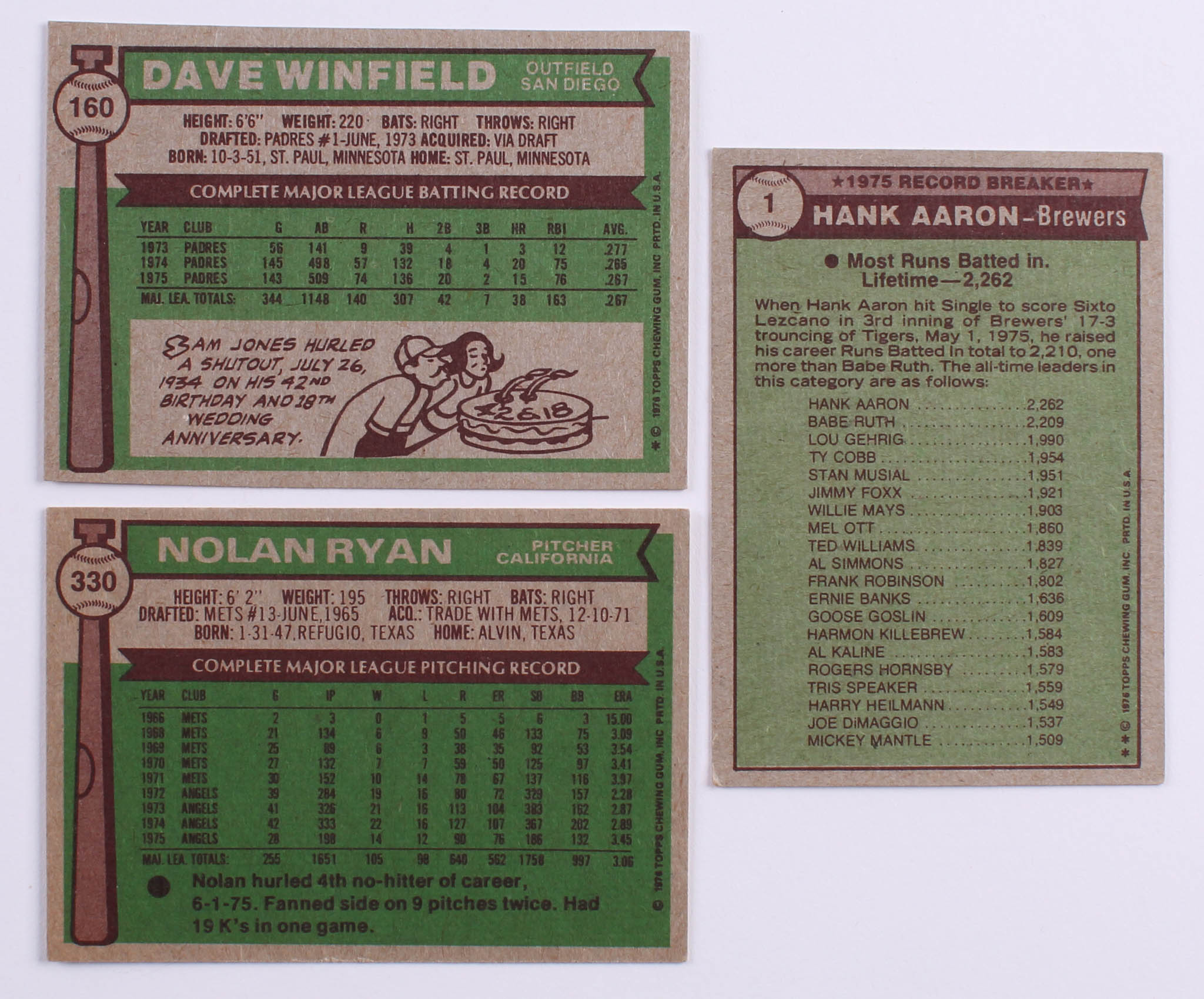 Lot of (375+) 1976 Topps Baseball Cards with #160 Dave Winfield, #1 Hank Aaron, #330 Nolan Ryan