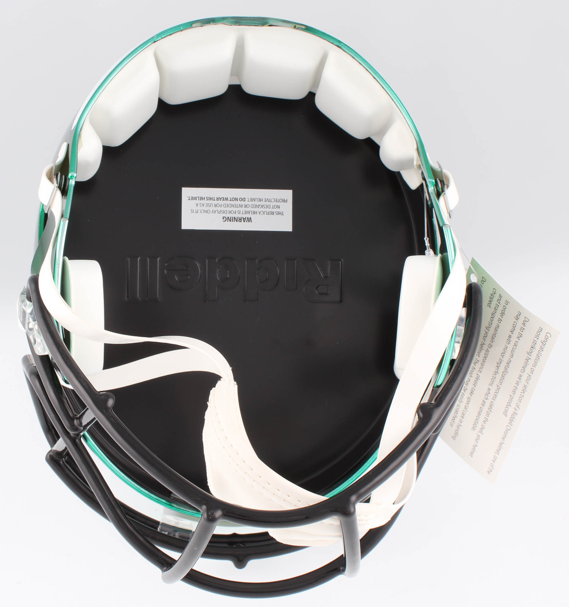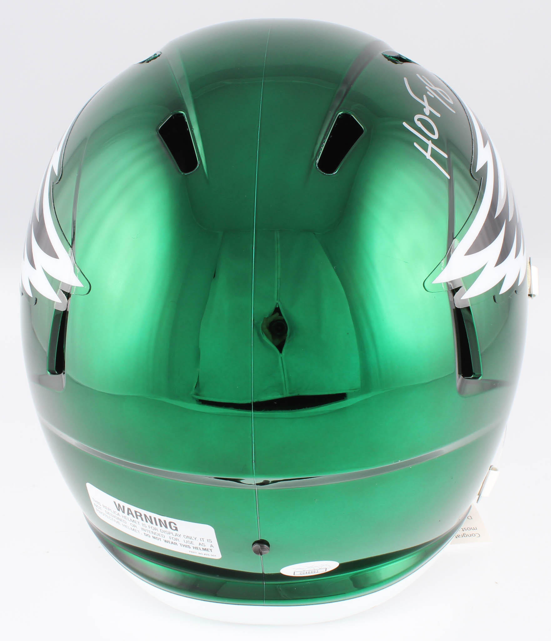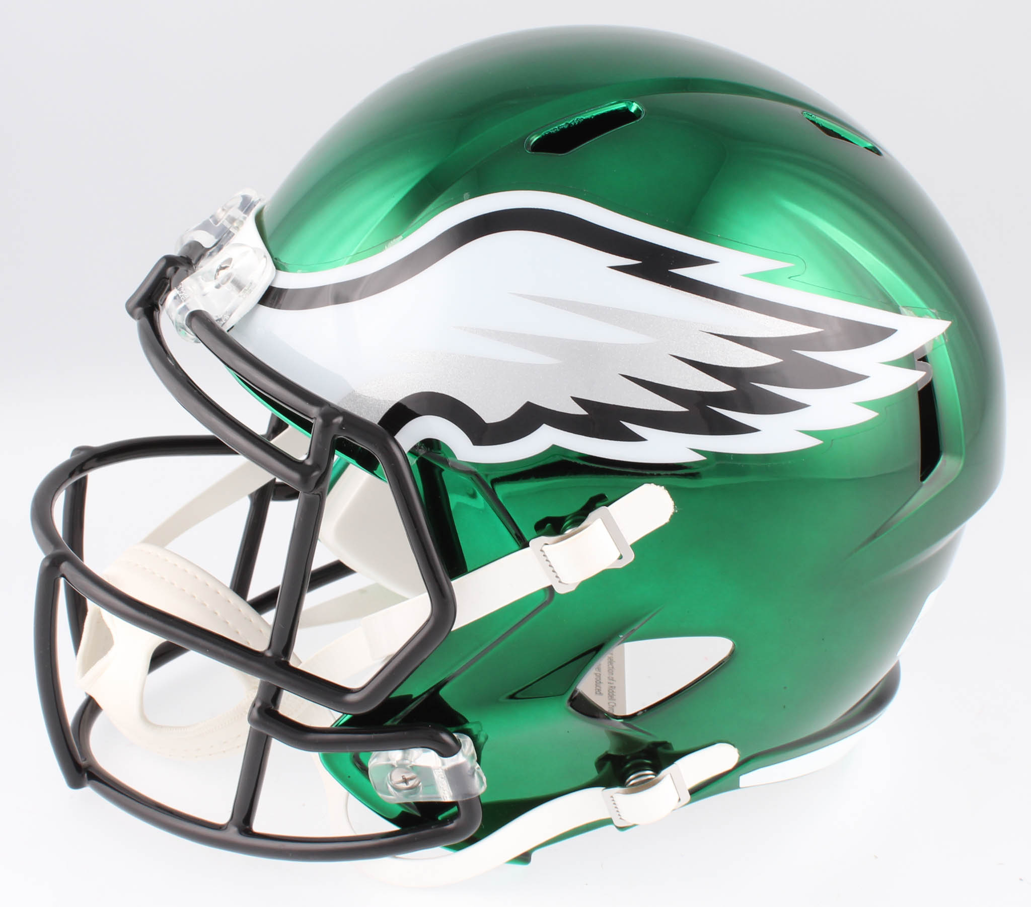 Riddell Philadelphia Eagles full-size replica chrome speed helmet. Hand-signed in silver paint pen by Brian Dawkins (HOF).