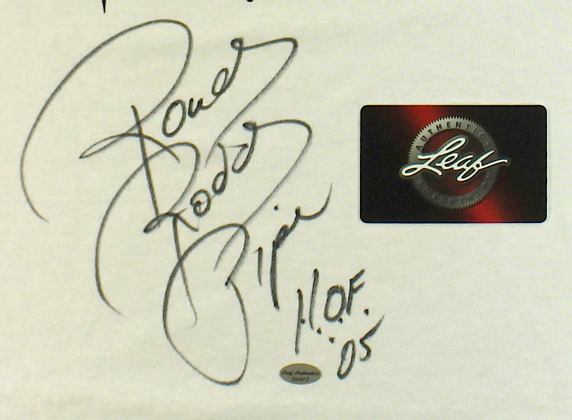 WWE T-shirt, size XL. Hand-signed in black felt tip pen by Rowdy Roddy Piper. The autograph includes an official Leaf Authentics hologram and matching COA for authenticity purposes.