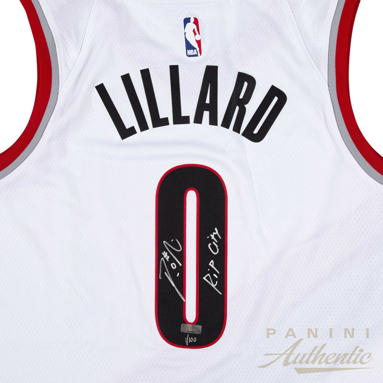Rip City has become the nickname that all Portland fans have embraced to describe their unique town. One night in 1971, long time Trailblazers announcer Bill Schonely blurted out the phrase "Rip City!" during a game broadcast and since then the legacy has stood the test of time. Damian Lillard hopes to lead Portland back to the championship and you can get your very own piece of Rip City history with this autographed swingman jersey inscribed with "Rip City" by Damian Lillard. This Damian Lillard autographed jersey includes a Panini Authentic certificate of authenticity with a unique hologram number that corresponds to the hologram on the actual collectible. These holograms protect the integrity of the product and serve to guarantee the authenticity of the signature it bears. You will receive a random number from the edition.