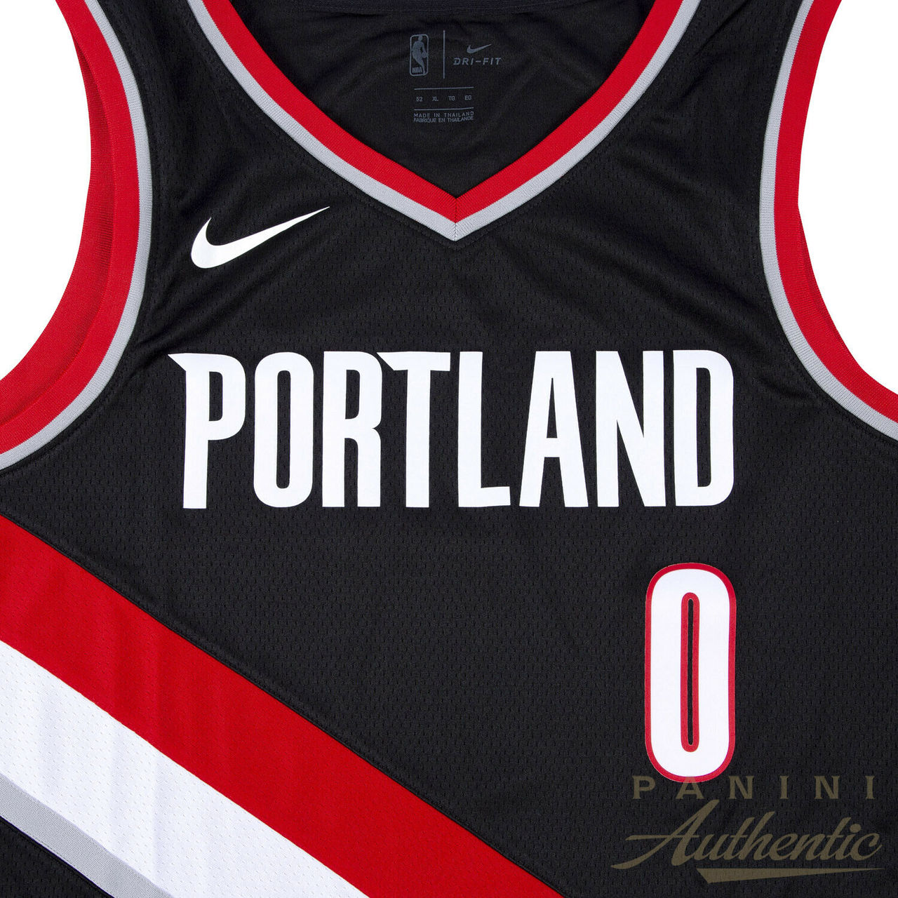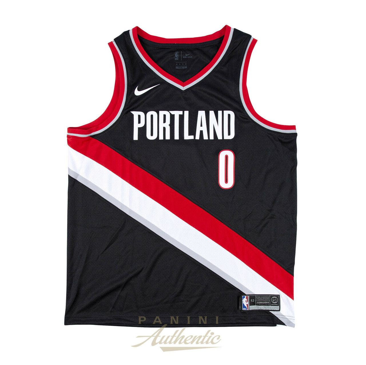 Nike Swingman on-court style jersey, size 52. Hand-signed and inscribed in white paint pen by Damian Lillard. The jersey is limited edition and has been hand-numbered #/100. Please note, winning bidder will receive a random number from this same edition.