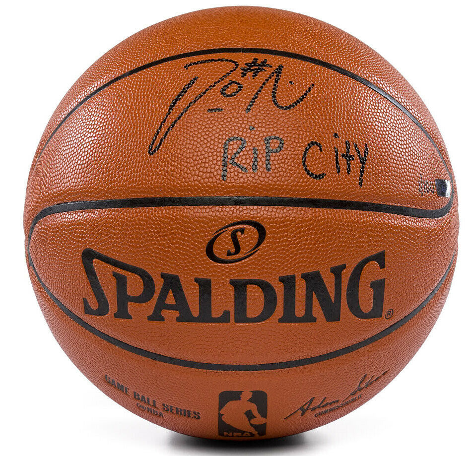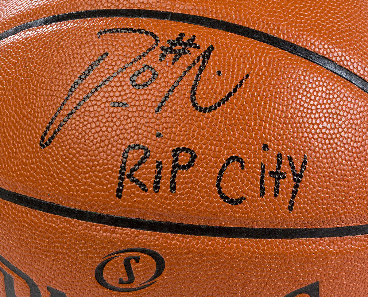 Rip City has become the nickname that all Portland fans have embraced to describe their unique town. One night in 1971, long time Trailblazers announcer Bill Schonely blurted out the phrase "Rip City!" during a game broadcast and since then the legacy has stood the test of time. Damian Lillard hopes to lead Portland back to the championship and you can get your very own piece of Rip City history with this autographed replica basketball inscribed with "Rip City" by Damian Lillard. This Damian Lillard autographed basketball includes a Panini Authentic certificate of authenticity with a unique hologram number that corresponds to the hologram on the actual collectible. These holograms protect the integrity of the product and serve to guarantee the authenticity of the signature it bears. You will receive a random number from the edition.