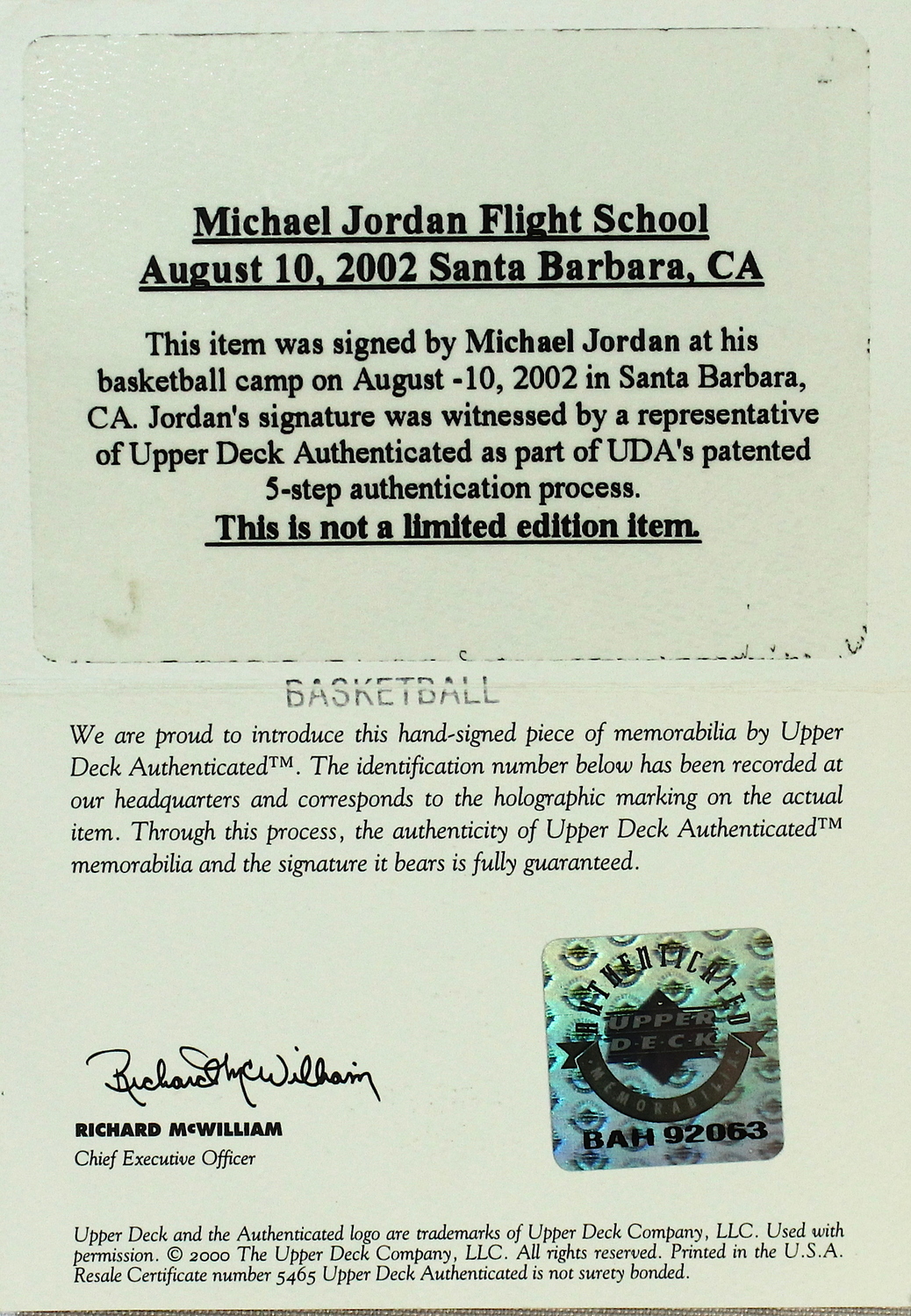 The autograph includes a COA from Upper Deck Authenticated. Also includes the original UDA bag.
