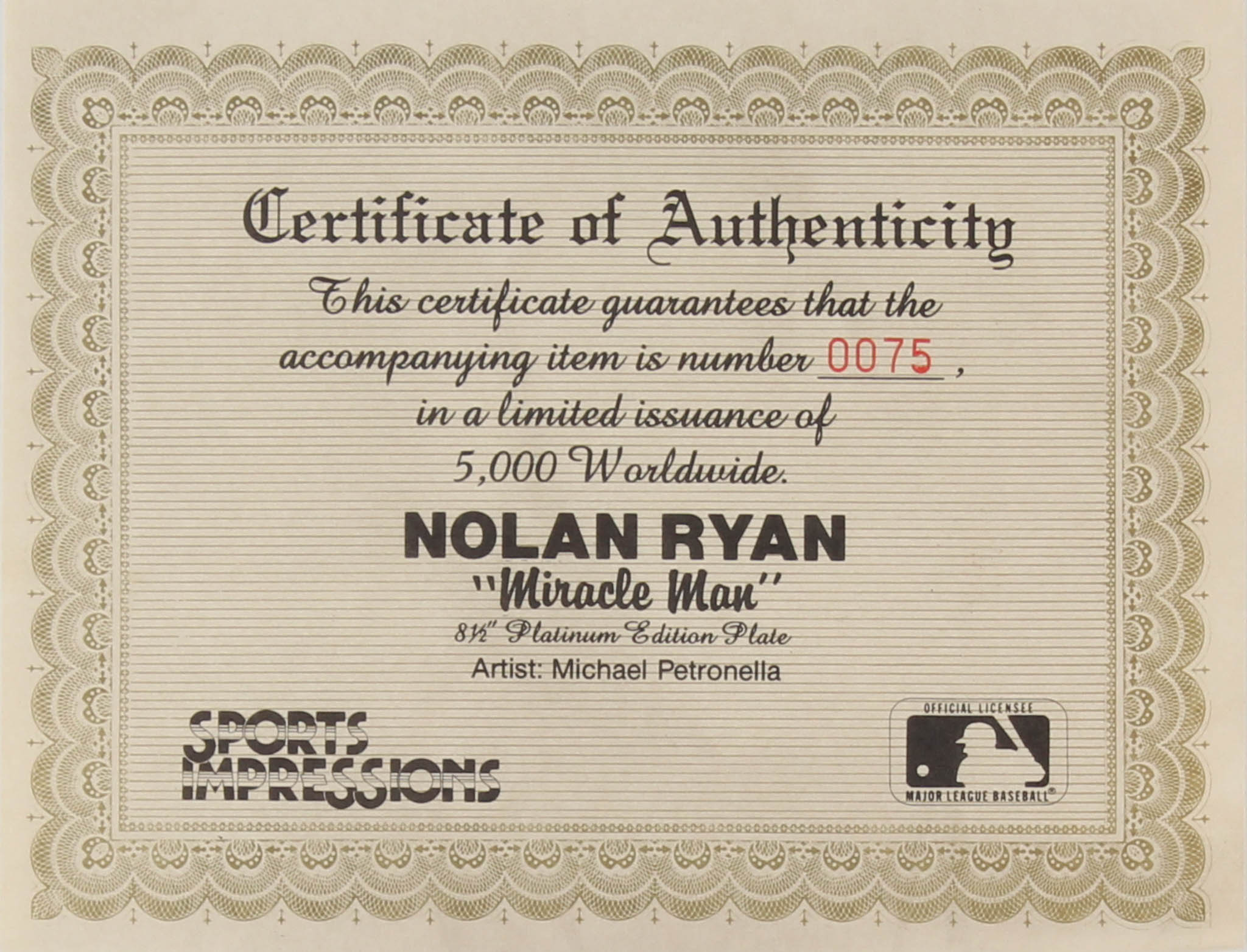 LE Sports Impressions Nolan Ryan "Miracle Man" Porcelain Plate