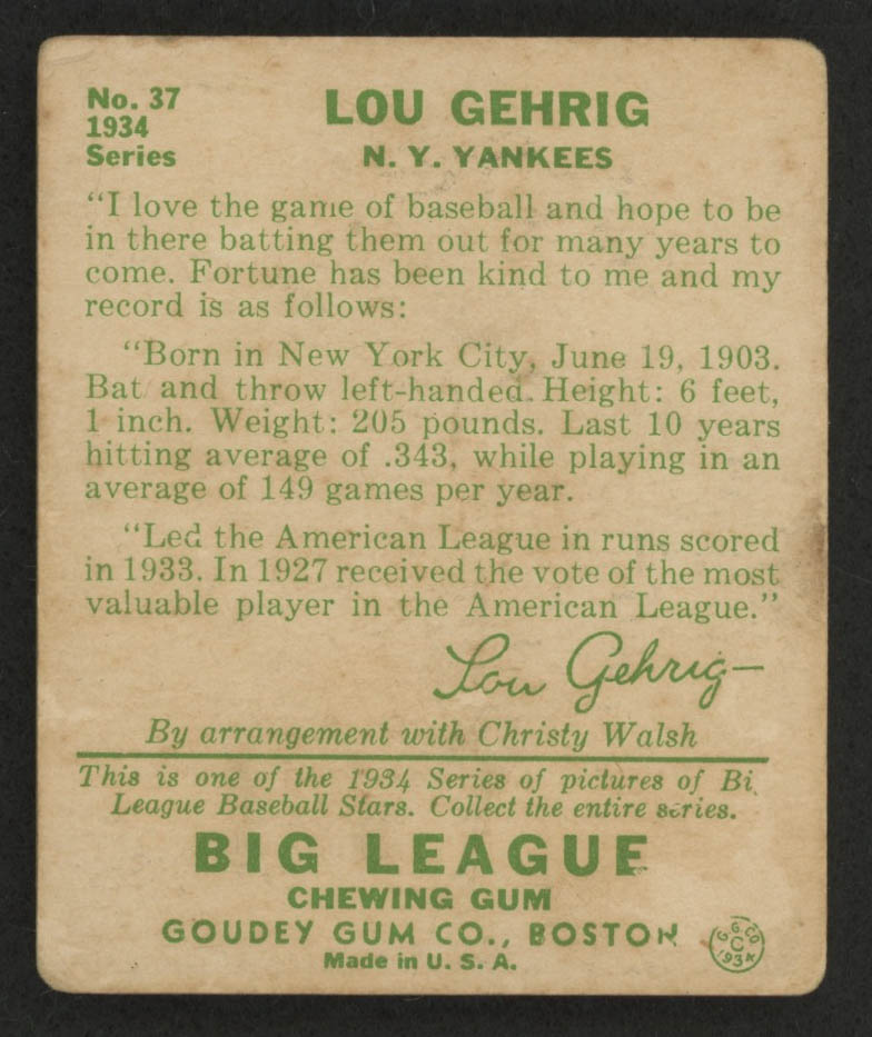 1934 Goudey #37 Lou Gehrig