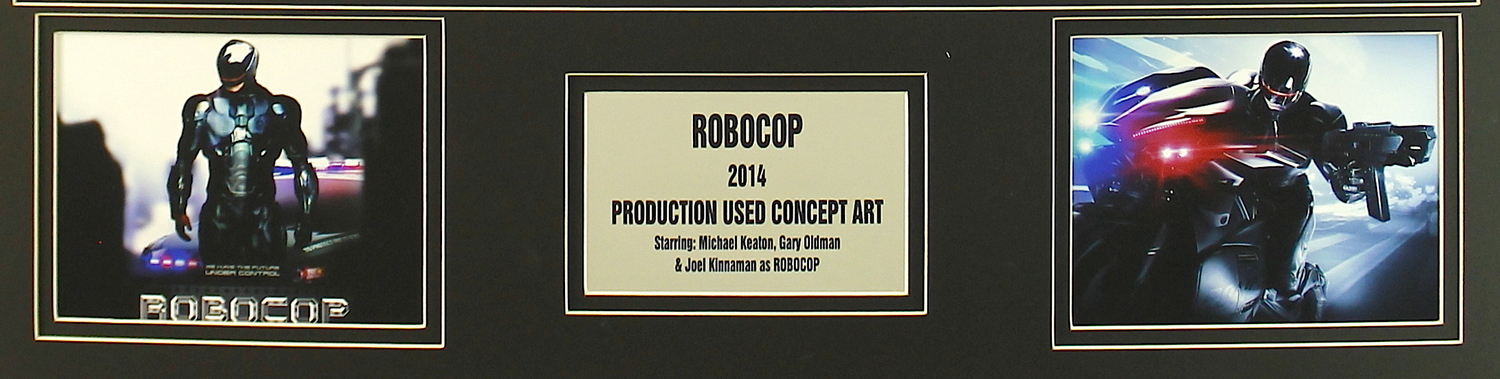 20" x 24" matted display highlighting production used concept art from the 2014 Blockbuster Movie "Robocop". The display includes a Metro Goldwyn Mayer COA for authenticity purposes.