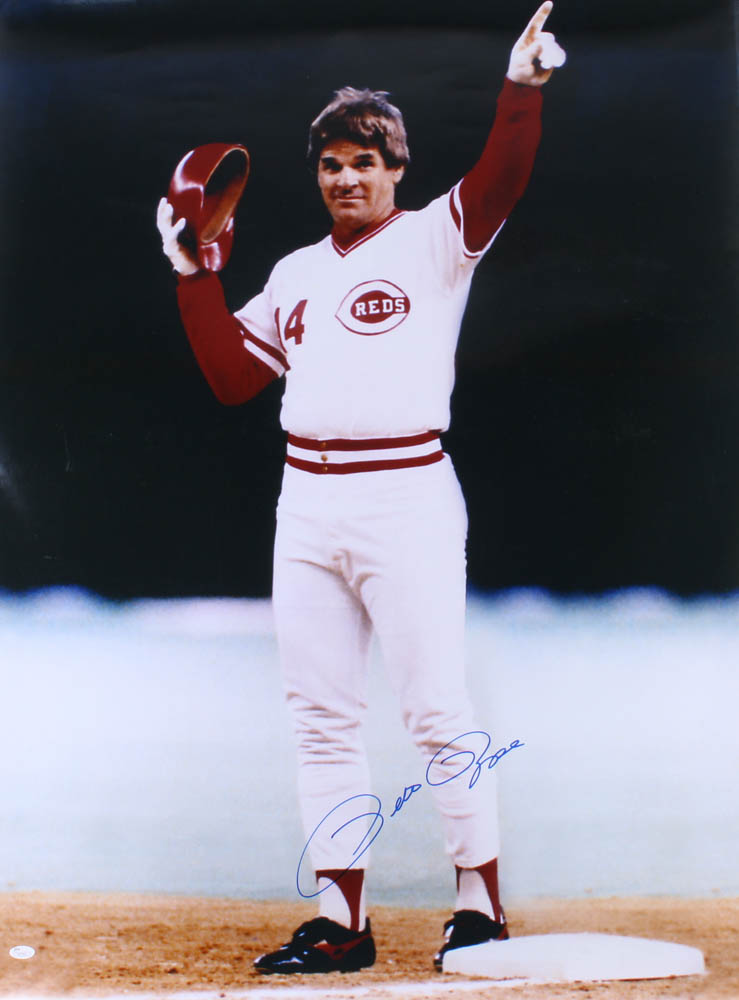 Pete Rose Signed Reds 30x40 Poster (JSA COA) (Imperfect)
