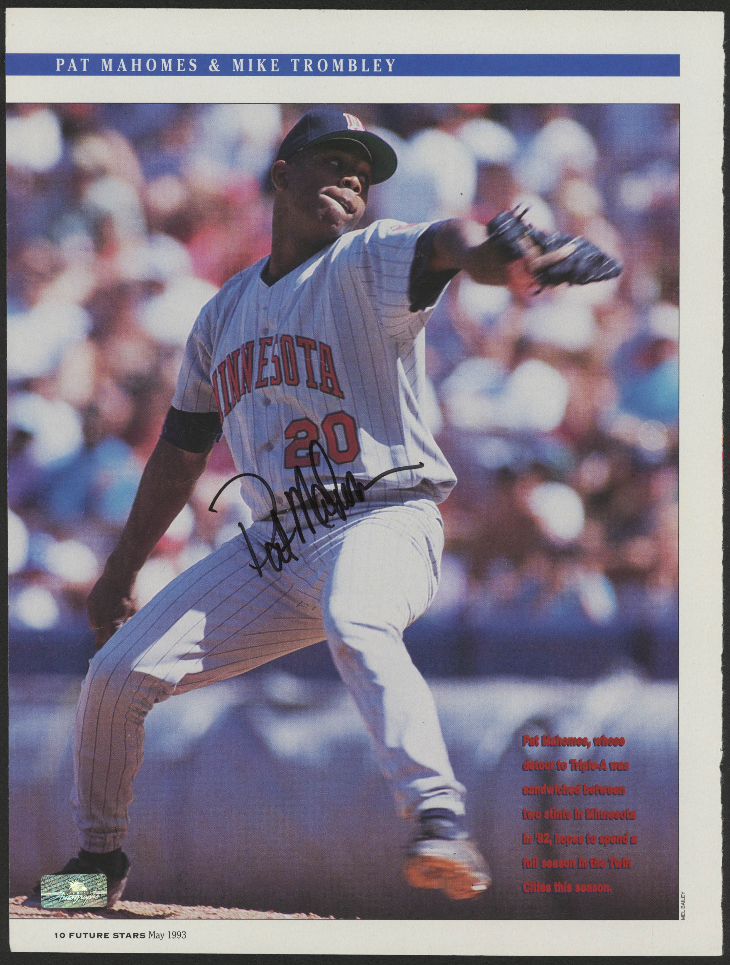 Pat Mahomes Signed Minnesota Twins 8x10 Magazine Page (Palm Beach COA)