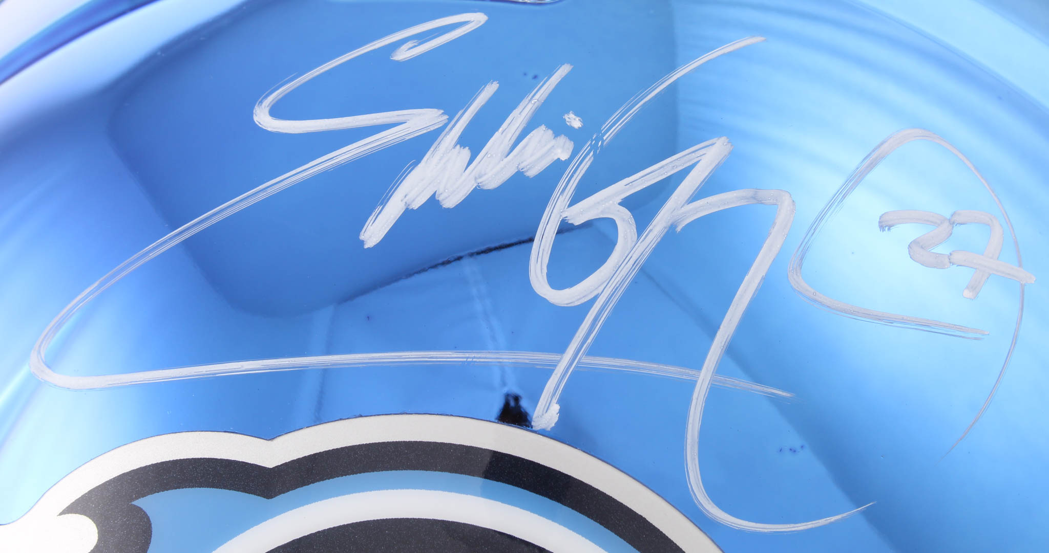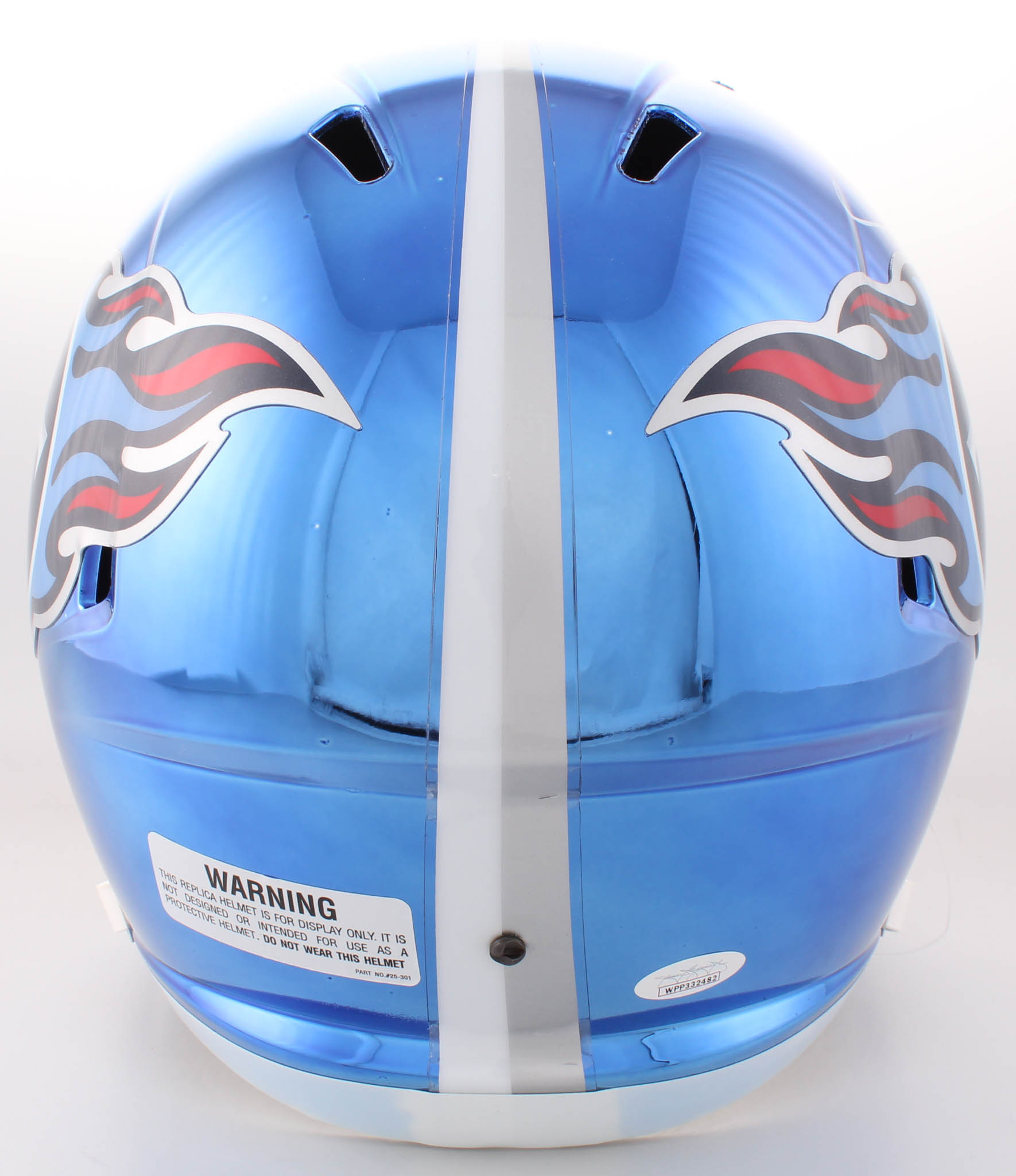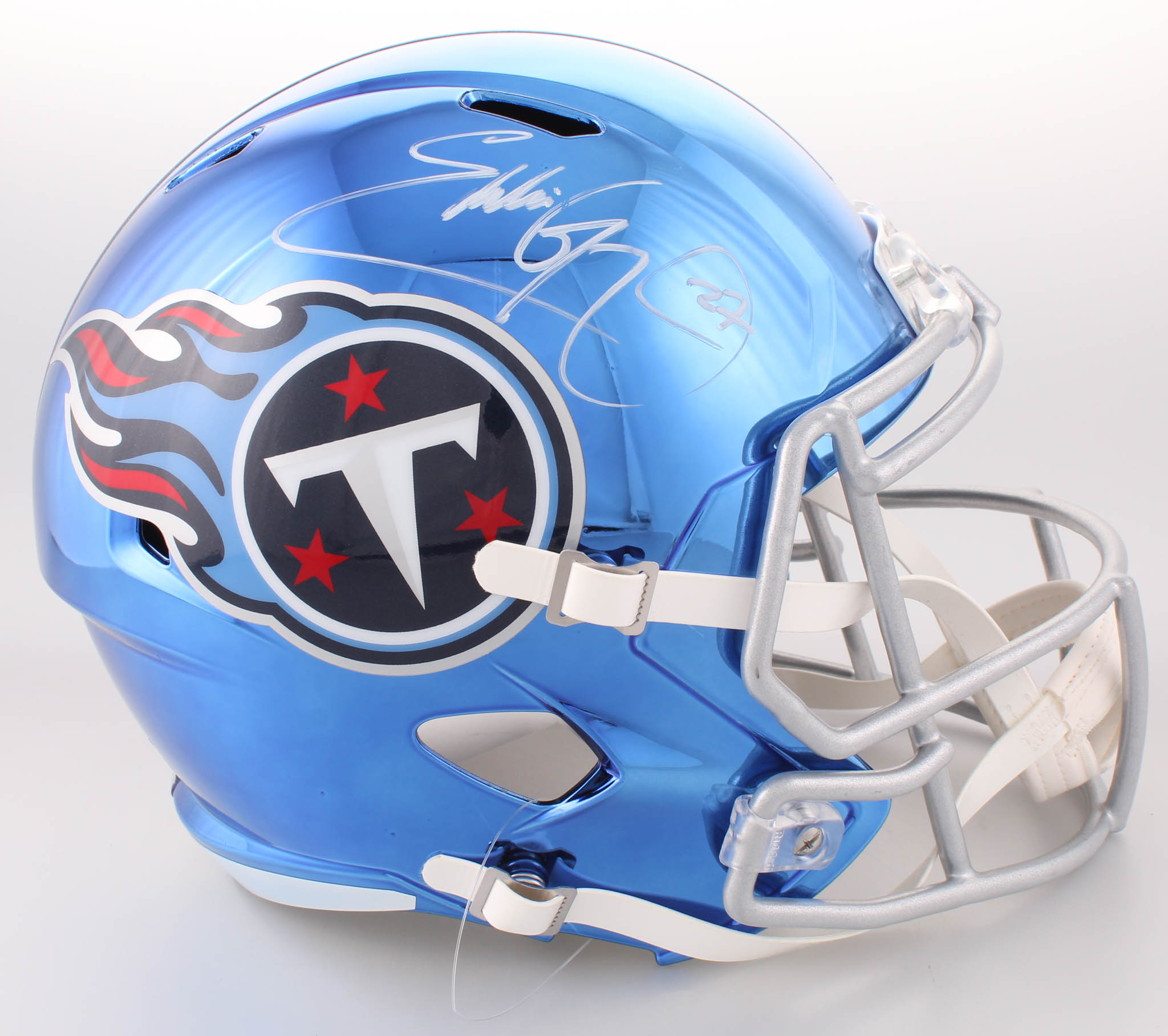 Riddell Tennessee Titans custom blue chrome full-size replica Speed helmet. Hand-signed in white paint pen by Eddie George.