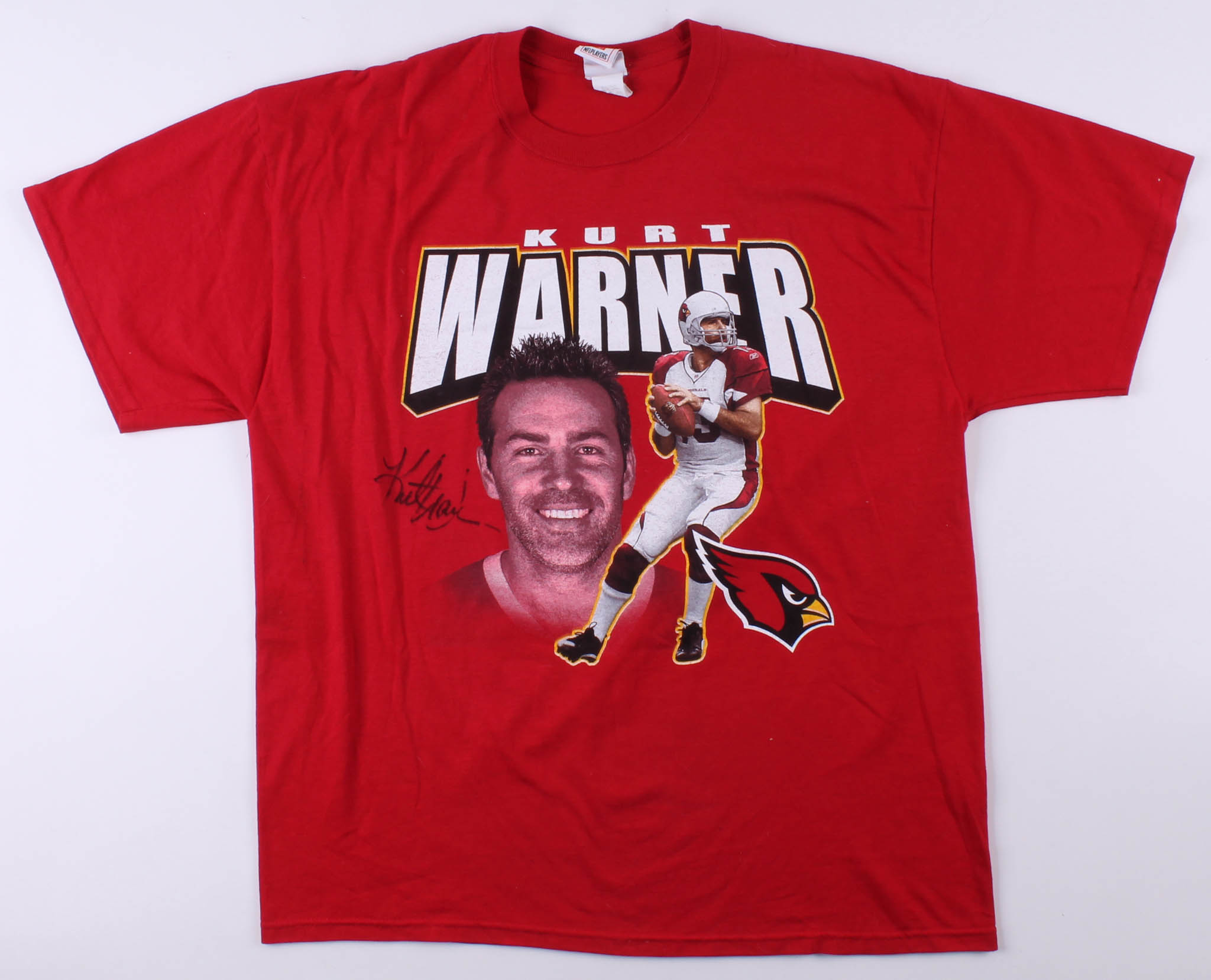 NFL "Kurt Warner " t-shirt, size XL. Hand-signed in black felt-tip pen by Kurt Warner (Arizona Cardinals).