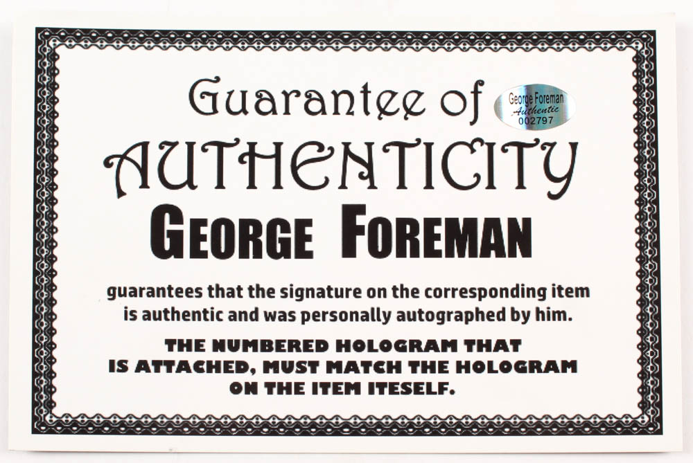 The lot / autograph(s) includes an official George Foreman player hologram and matching COA for authenticity purposes.