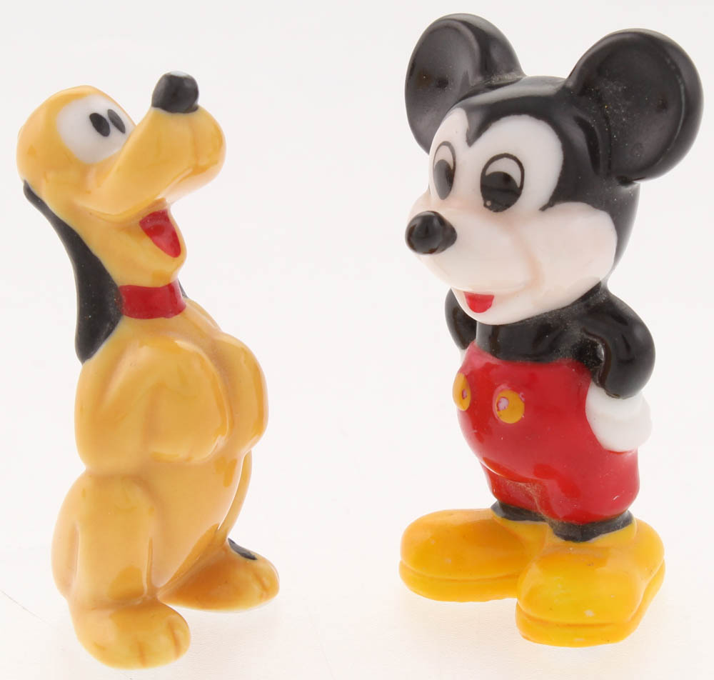 Vintage Disney Mickey Mouse & Pluto Ceramic Figurines with High Quality Display Case
