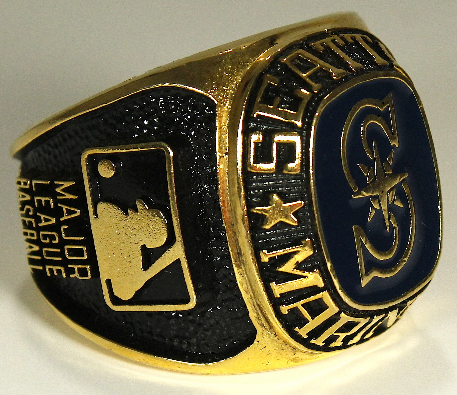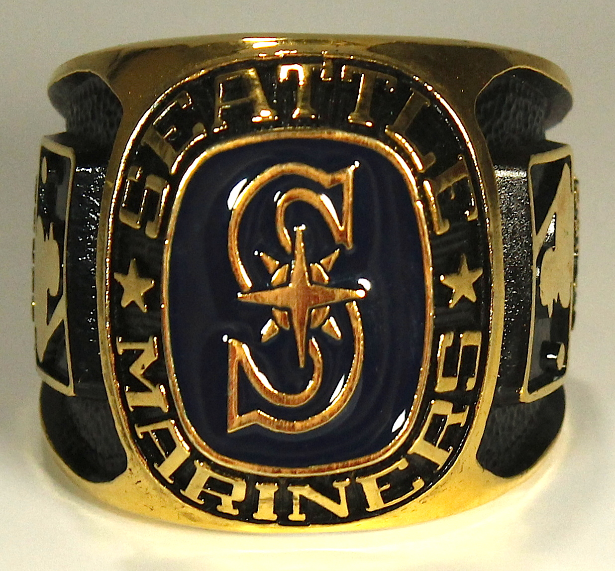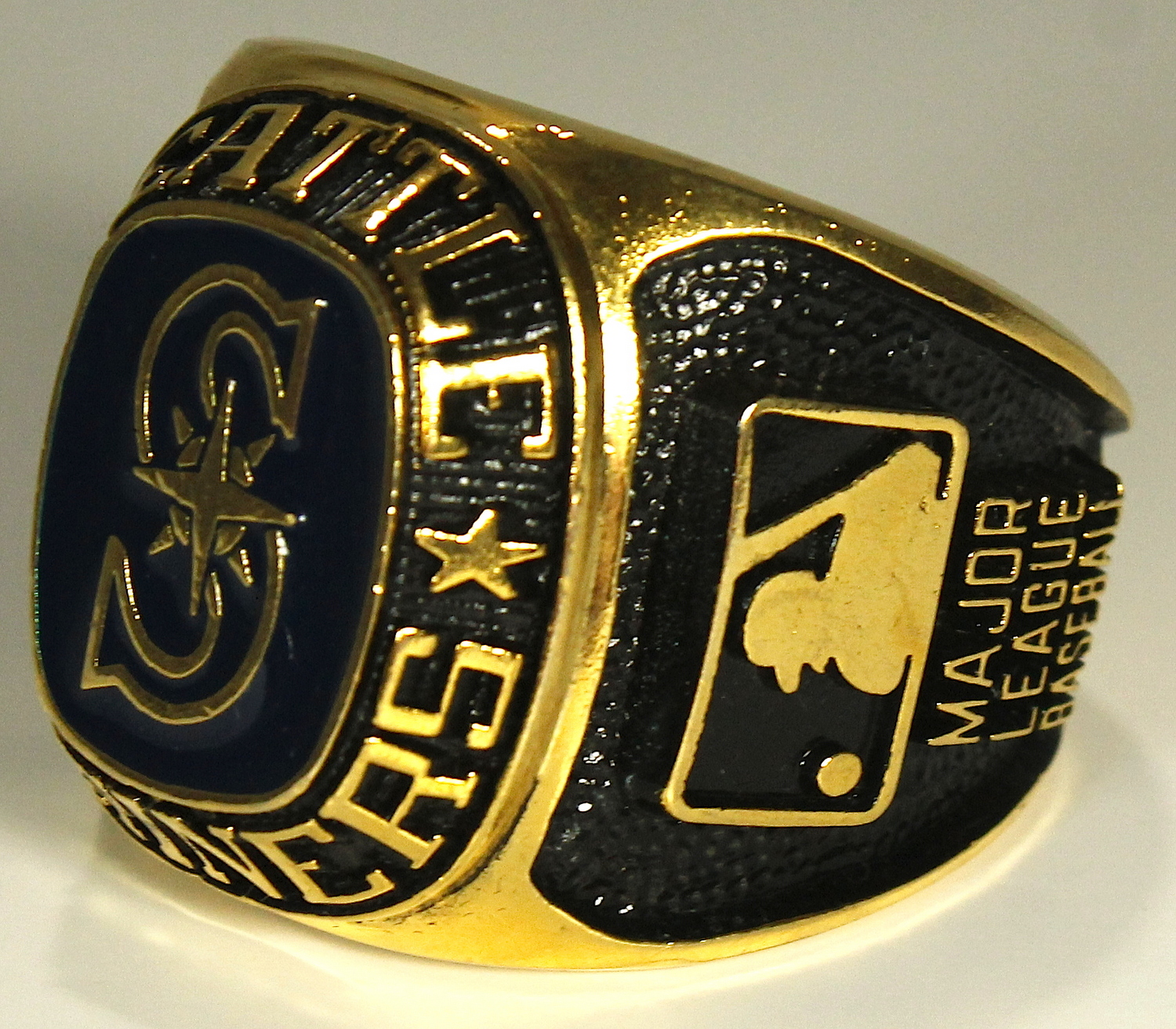 Seattle Mariners MLB Licensed over sized Trophy Ring. The ring has been hand crafted by professional jewelers. Made of celestrium. Size 30.
