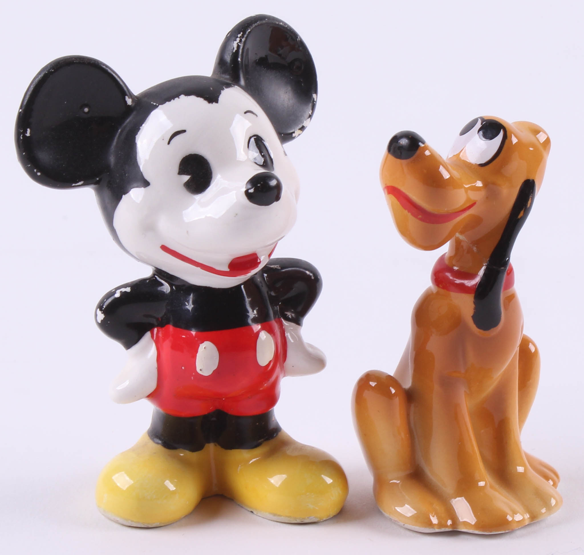 Vintage Disney Mickey Mouse & Pluto Ceramic Figurines with High Quality Display Case