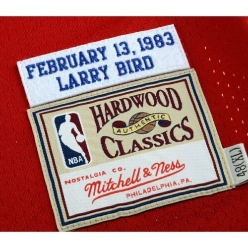 Mitchell & Ness authentic on-court style jersey, size XL. Hand-signed in silver paint pen by Larry Bird (HOF).