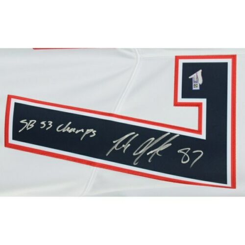 This jersey has been personally hand-signed by Rob Gronkowski with the inscription "SB 53 Champs." It is officially licensed by the National Football League and comes with an individually numbered, tamper-evident hologram from Fanatics Authentic. To ensure authenticity, the hologram can be reviewed online. This process helps to ensure that the product purchased is authentic and eliminates any possibility of duplication or fraud. The autograph includes an official Fanatics hologram and matching COA for authenticity purposes. Comes with a tamper-evident hologram from Fanatics Authenticated. Officially licensed by the NFL.