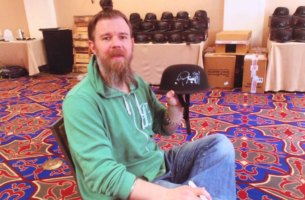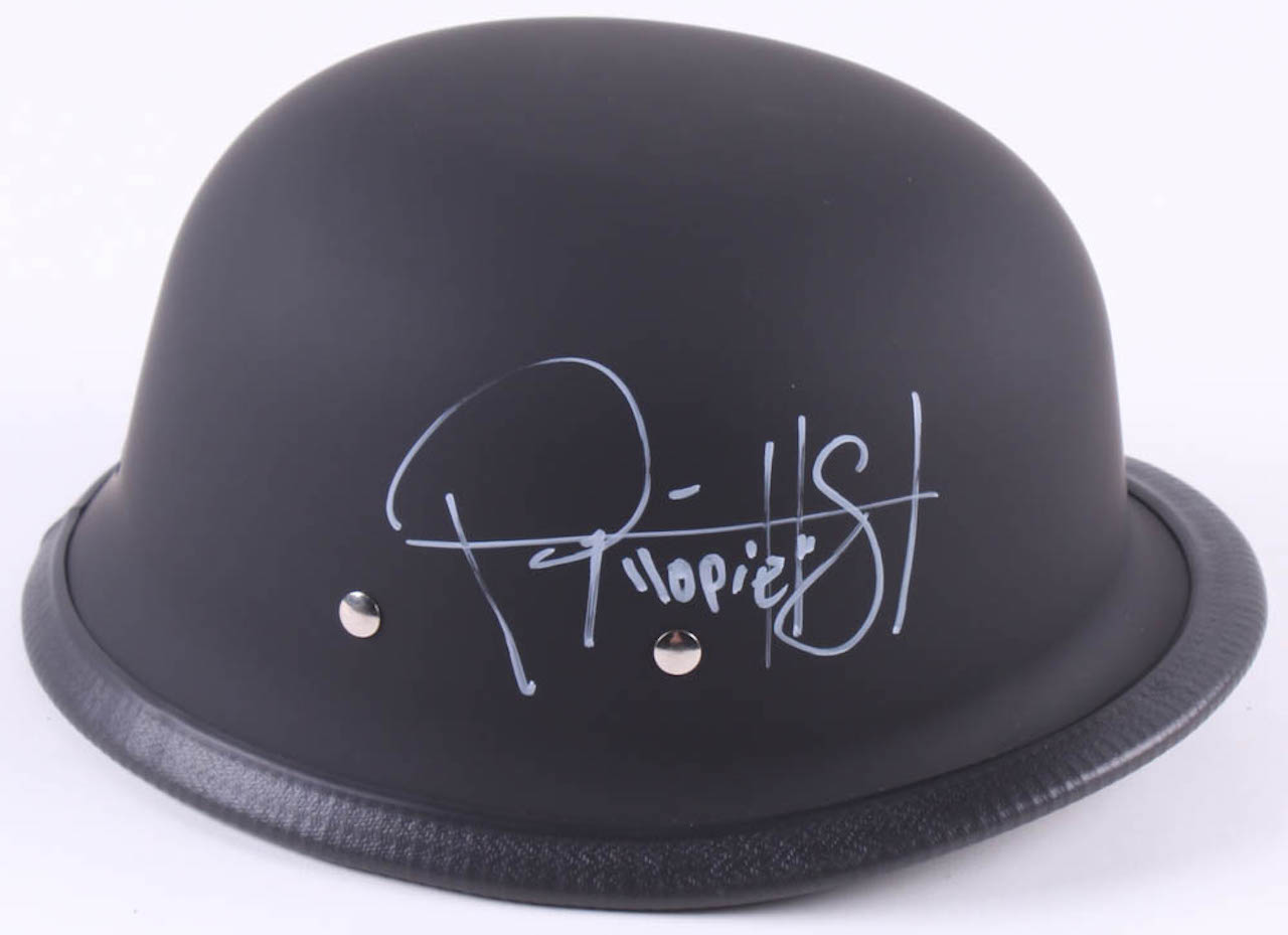 Daytona biker helmet has been hand-signed and inscribed in white paint pen by Ryan Hurst.