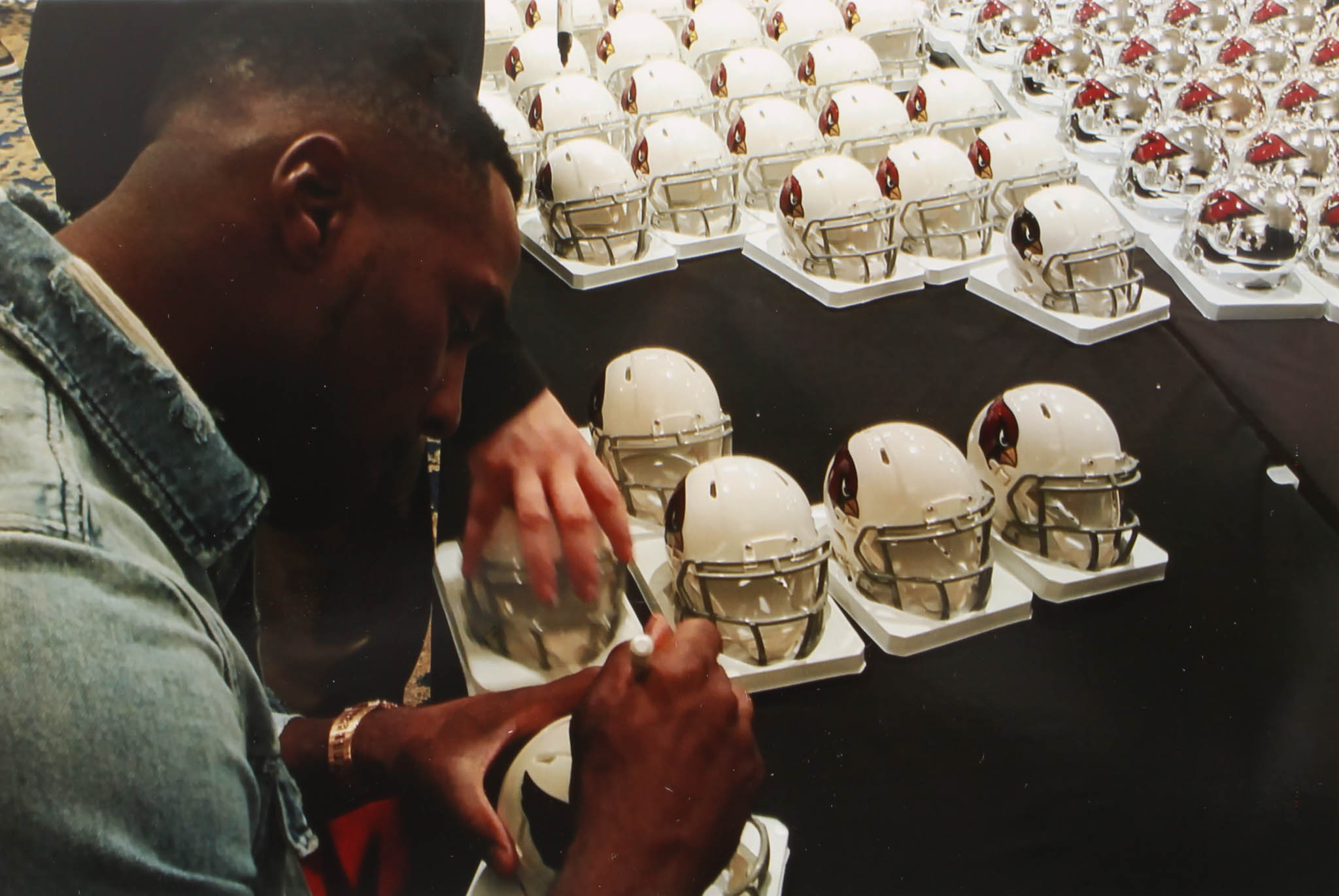 Riddell Arizona Cardinals speed mini helmet. Hand-signed in black felt-tip pen by Patrick Peterson.
