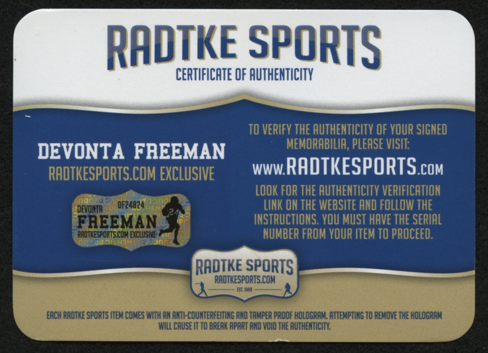 The lot/autograph (s) includes an official exclusive Devonta Freeman hologram and COA from Radtke Sports. Also includes a proof picture from the signing.