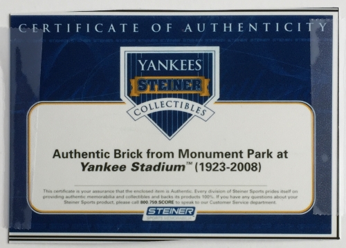 Frame measures 16" x 20" in size and features a Yankees Stadium piece of brick. Please note, frame is unsigned.