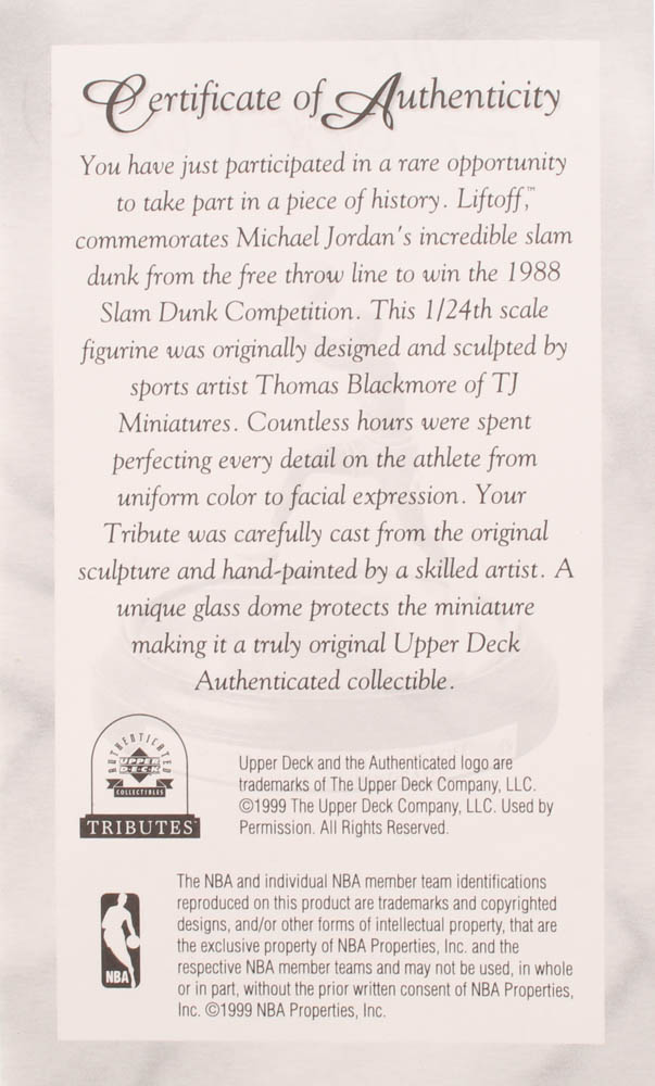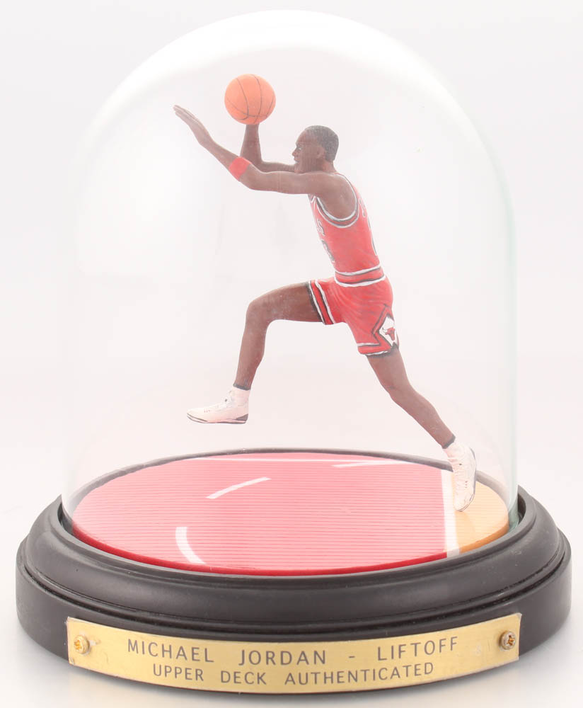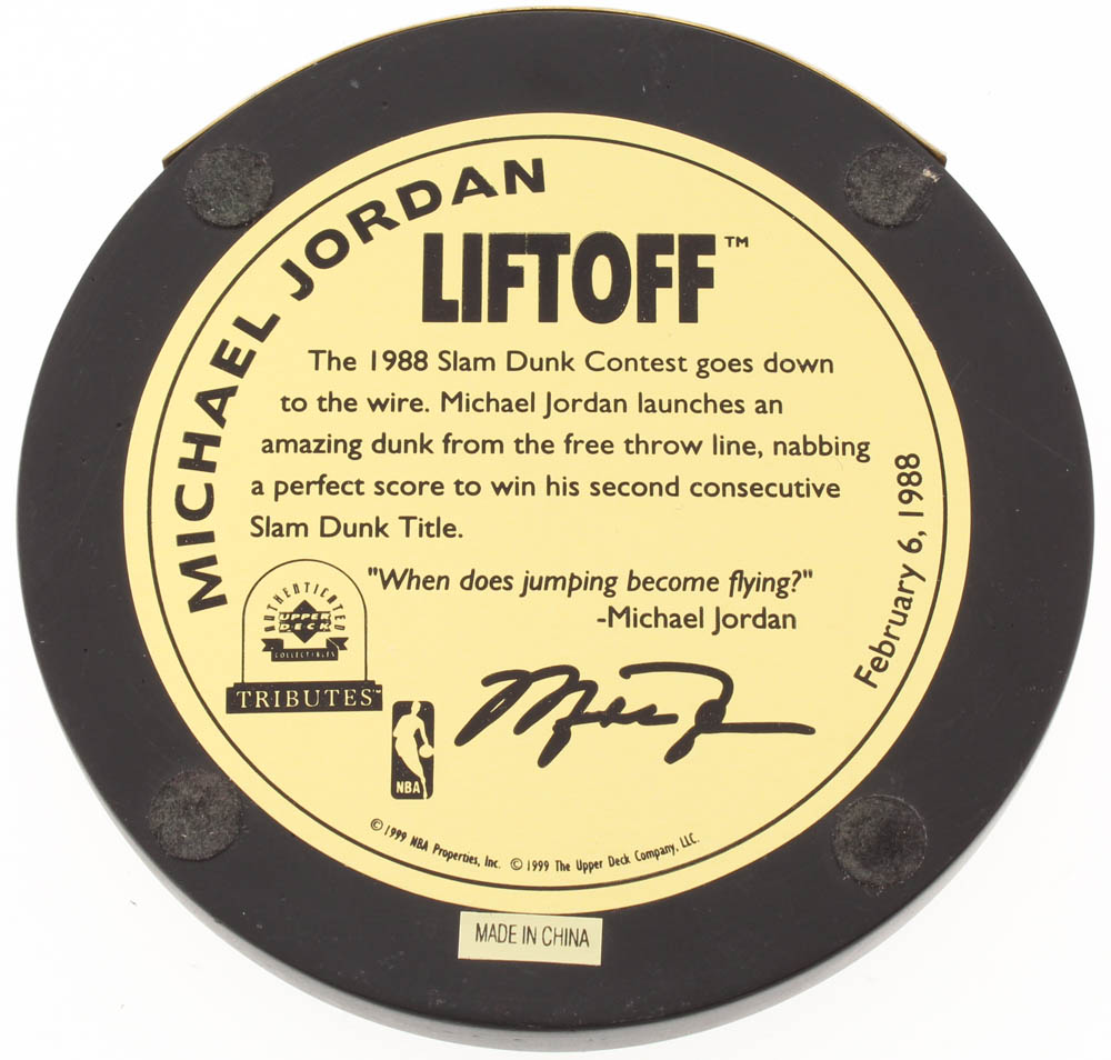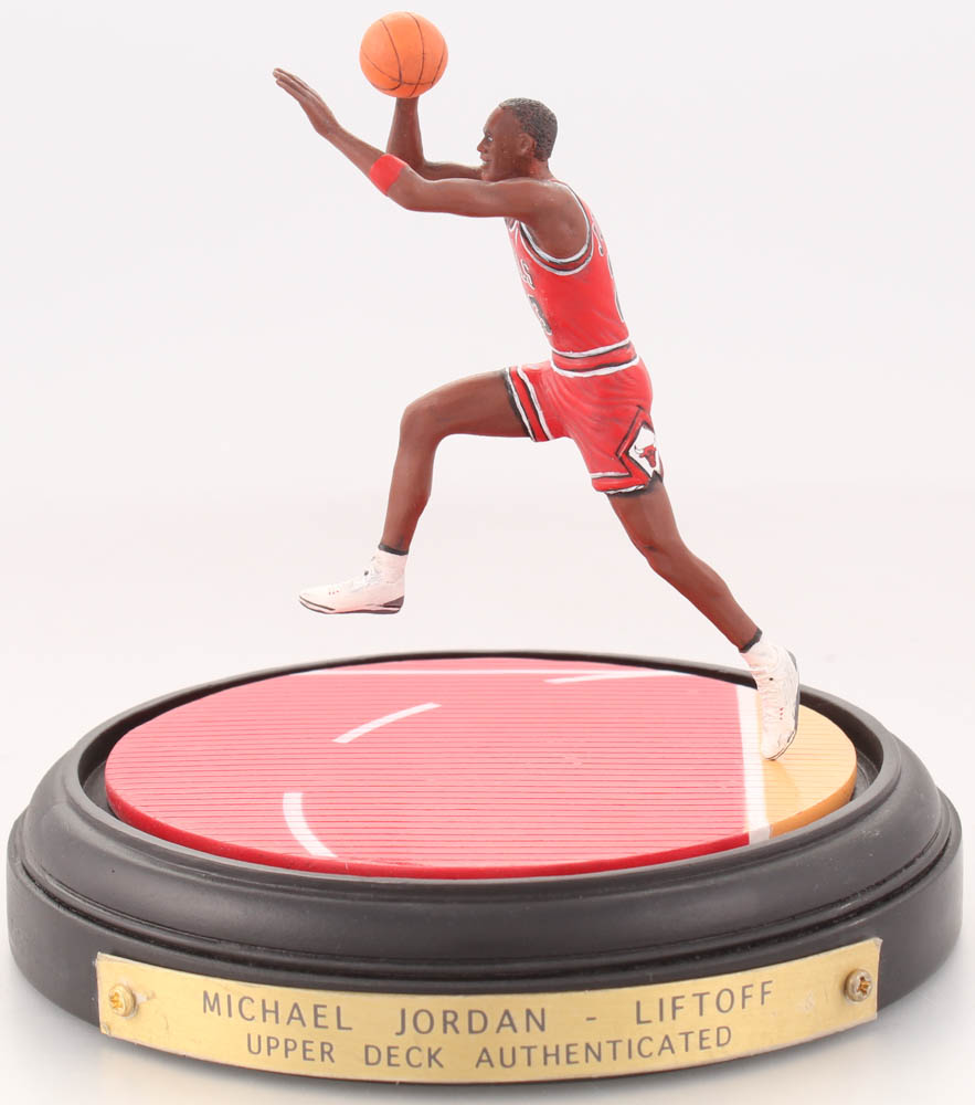 Upper Deck Tributes Figurine of Michael Jordan measures approximately 4.75" x 5" in size. Please note, the figurine is not signed.