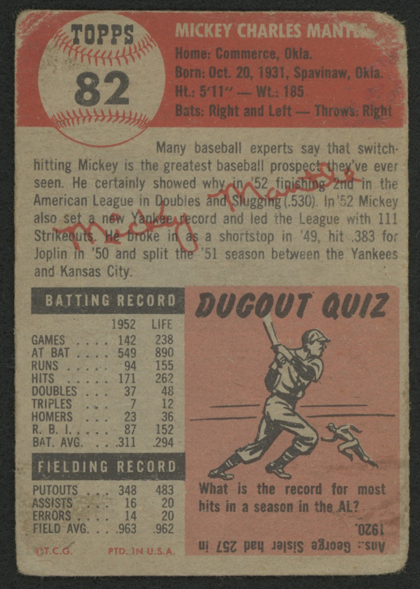 1953 Topps #82 Mickey Mantle