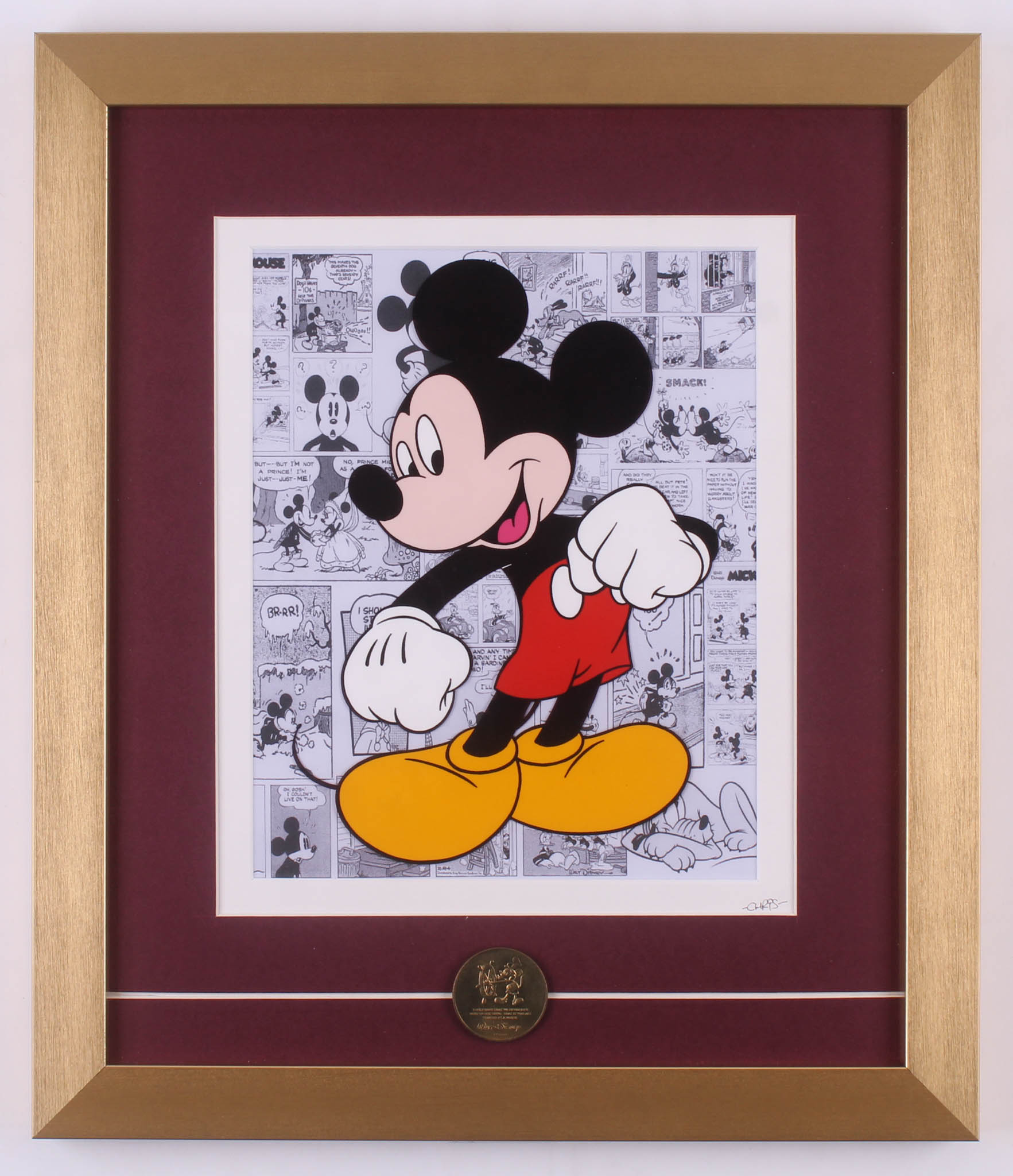 Walt Disney's "Mickey Mouse" 15x17.5 Custom Framed Hand-Painted Animation Serigraph with Coin