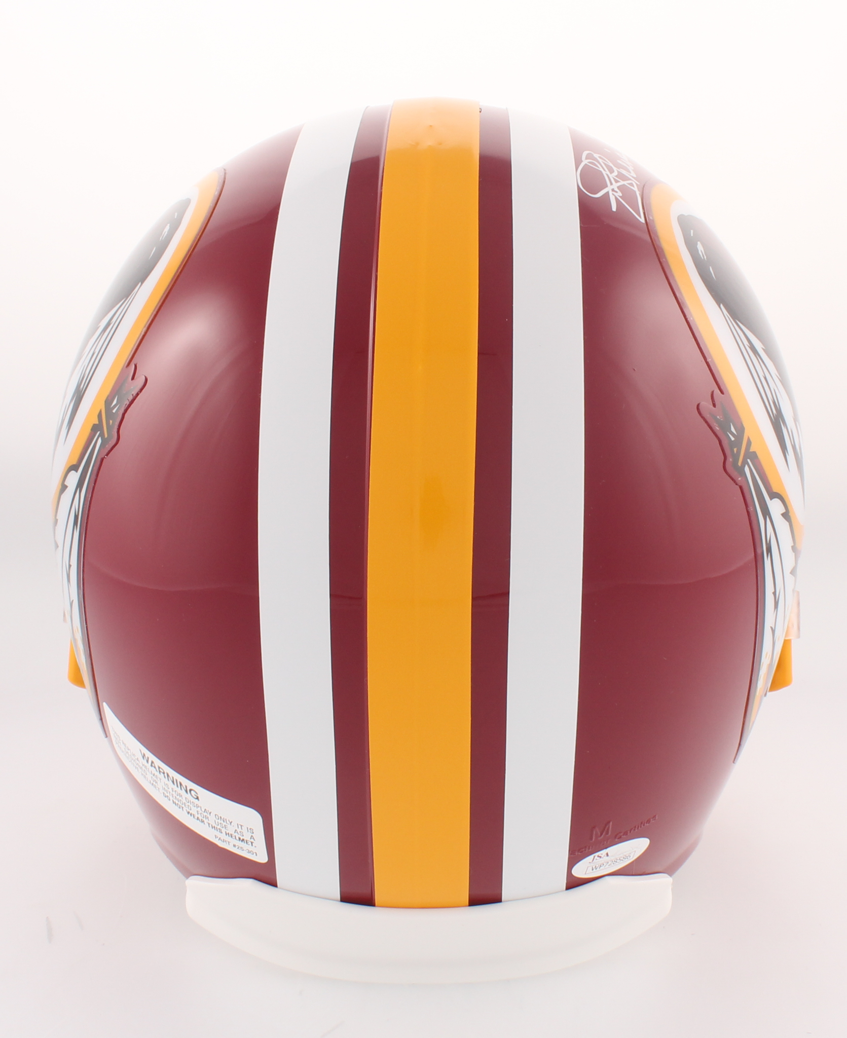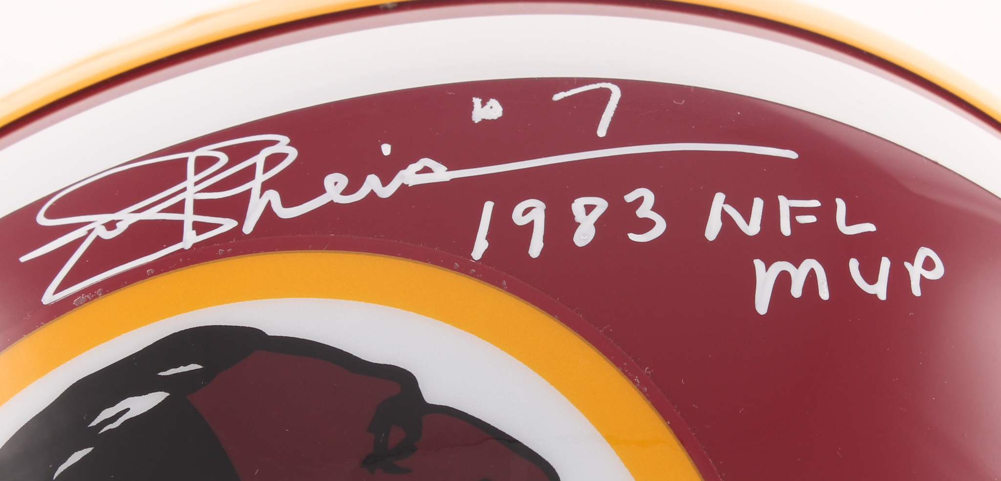 Riddell Washington Redskins full-size replica helmet has been hand-signed and inscribed in white paint pen by Joe Theismann.