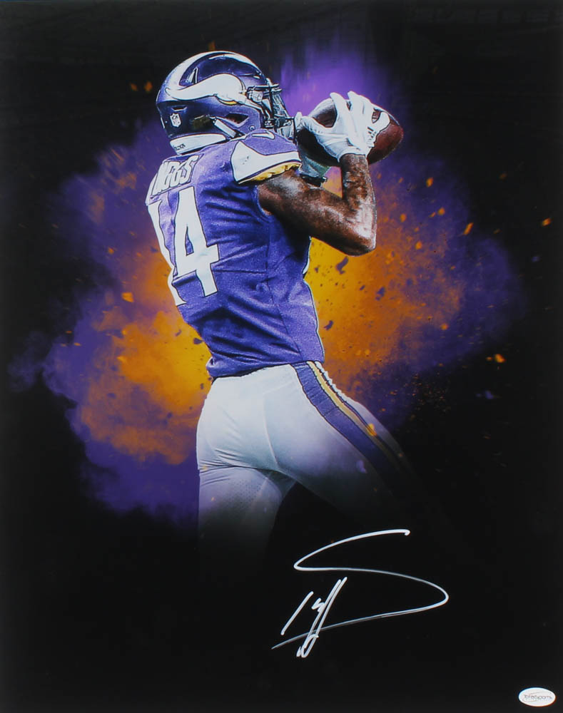 Photo measures 16" x 20" in size and has been hand-signed in white paint pen by Stefon Diggs.