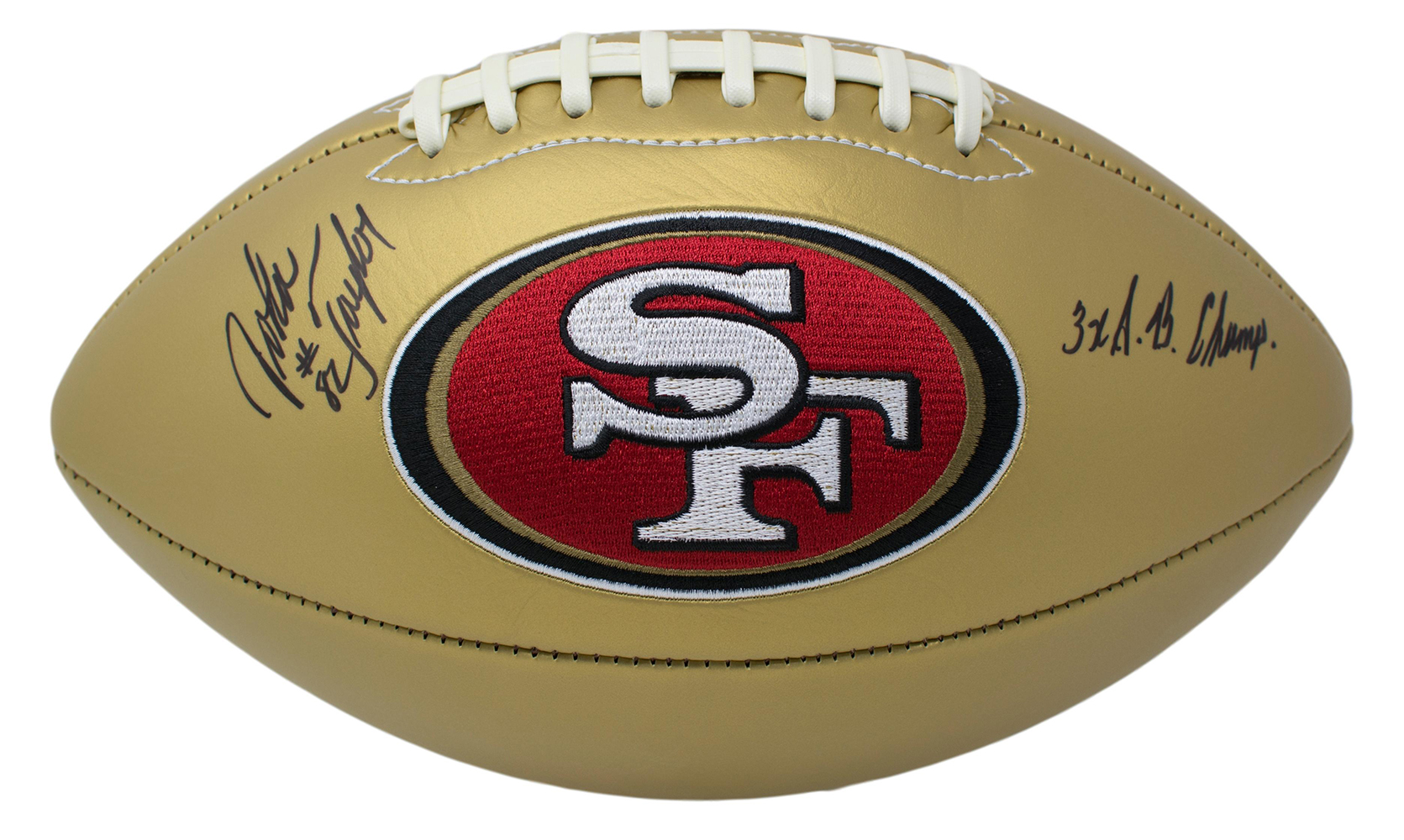 John Taylor Signed San Francisco 49ers Logo Football Inscribed "3x A.B. Champ." (JSA COA)