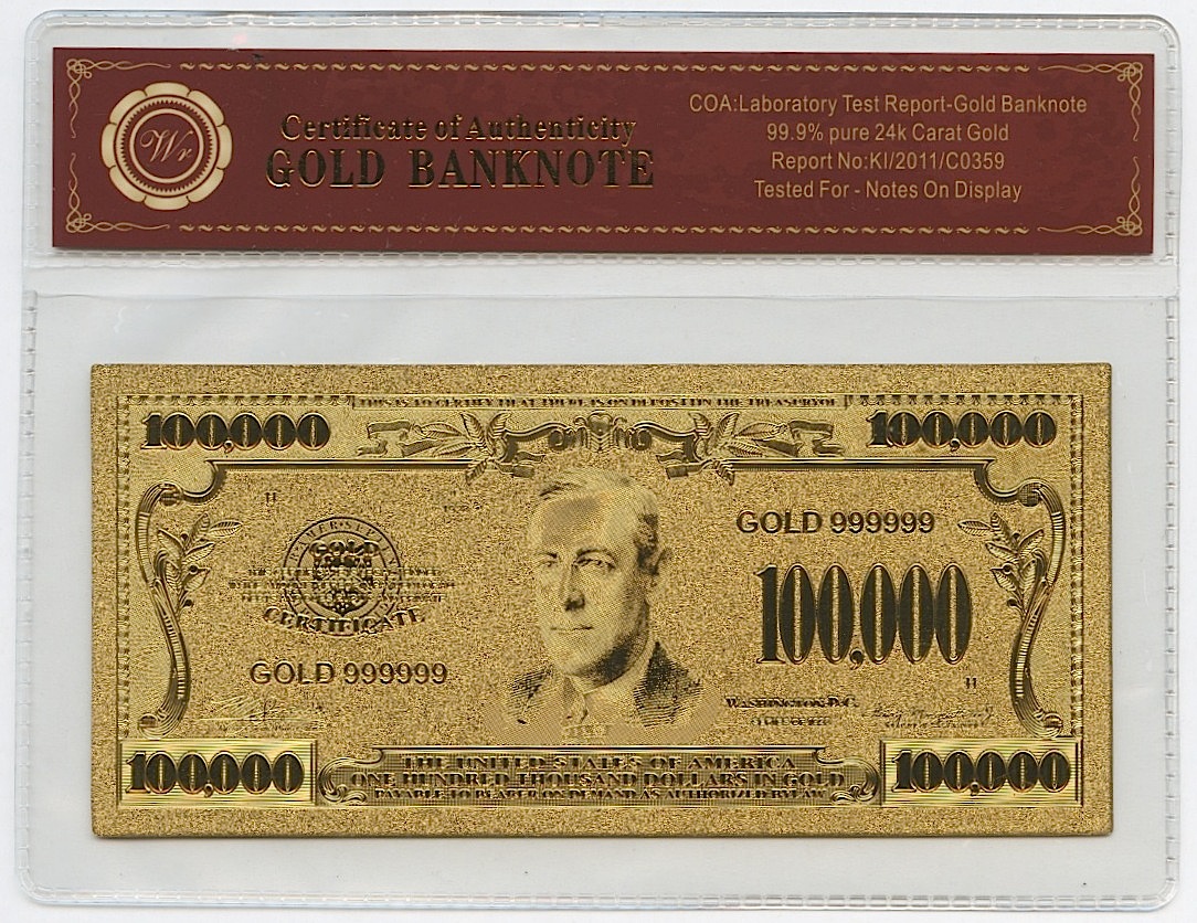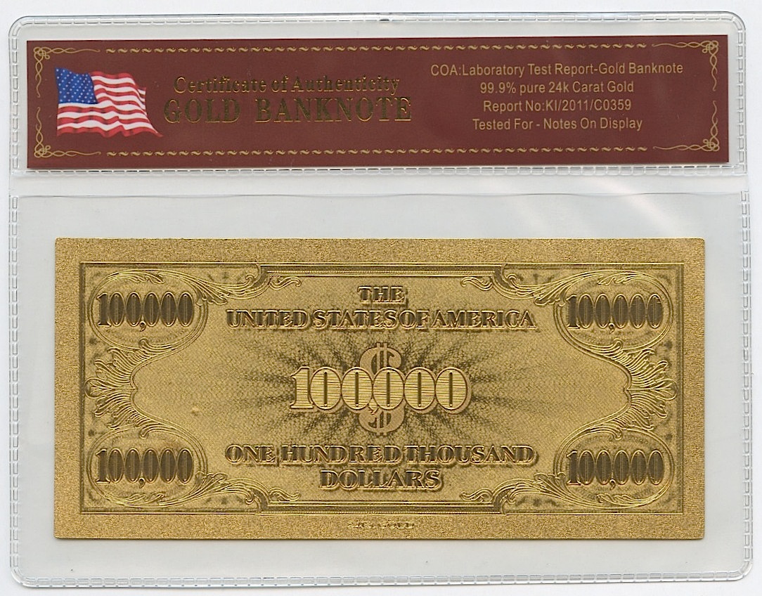 24K Gold Limited Edition US $100,000 Banknote Bill