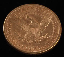 The Half Eagle is a United States coin that was produced for circulation from 1795 to 1929 and in commemorative and bullion coins since the 1980s. Composed almost entirely of gold, it has a face value of five dollars. Its production was authorized by The Act of April 2, 1792, and it was the first gold coin minted by the United States.