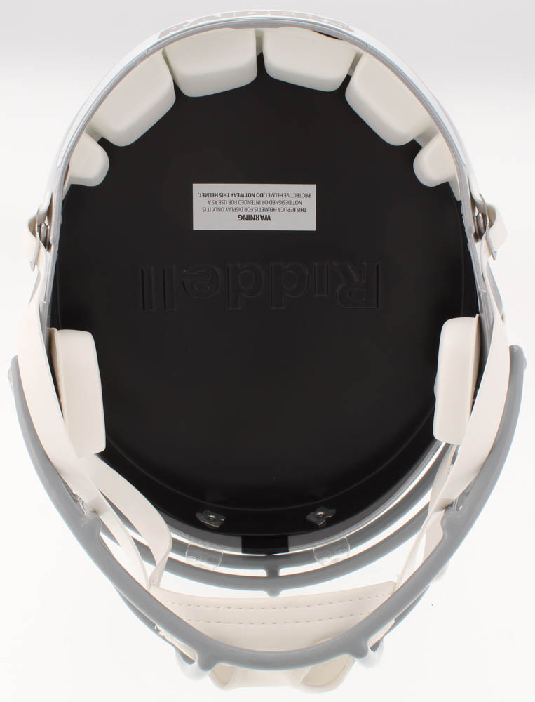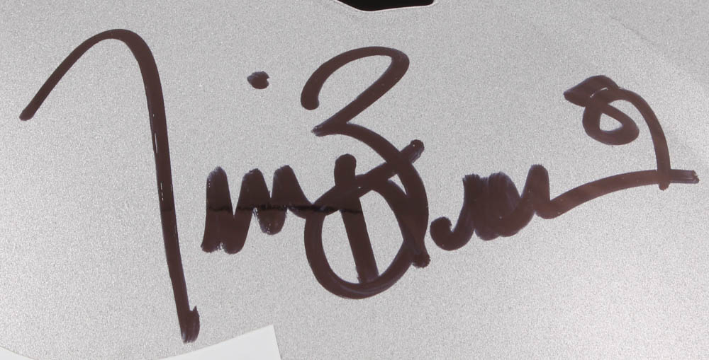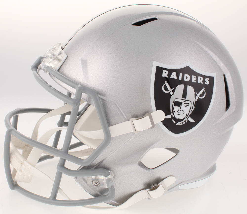 Oakland Raiders full-size replica speed helmet. Hand-signed in black felt tip pen by Tim Brown (HOF).
