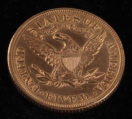 The Half Eagle is a United States coin that was produced for circulation from 1795 to 1929 and in commemorative and bullion coins since the 1980s. Composed almost entirely of gold, it has a face value of five dollars. Its production was authorized by The Act of April 2, 1792, and it was the first gold coin minted by the United States.