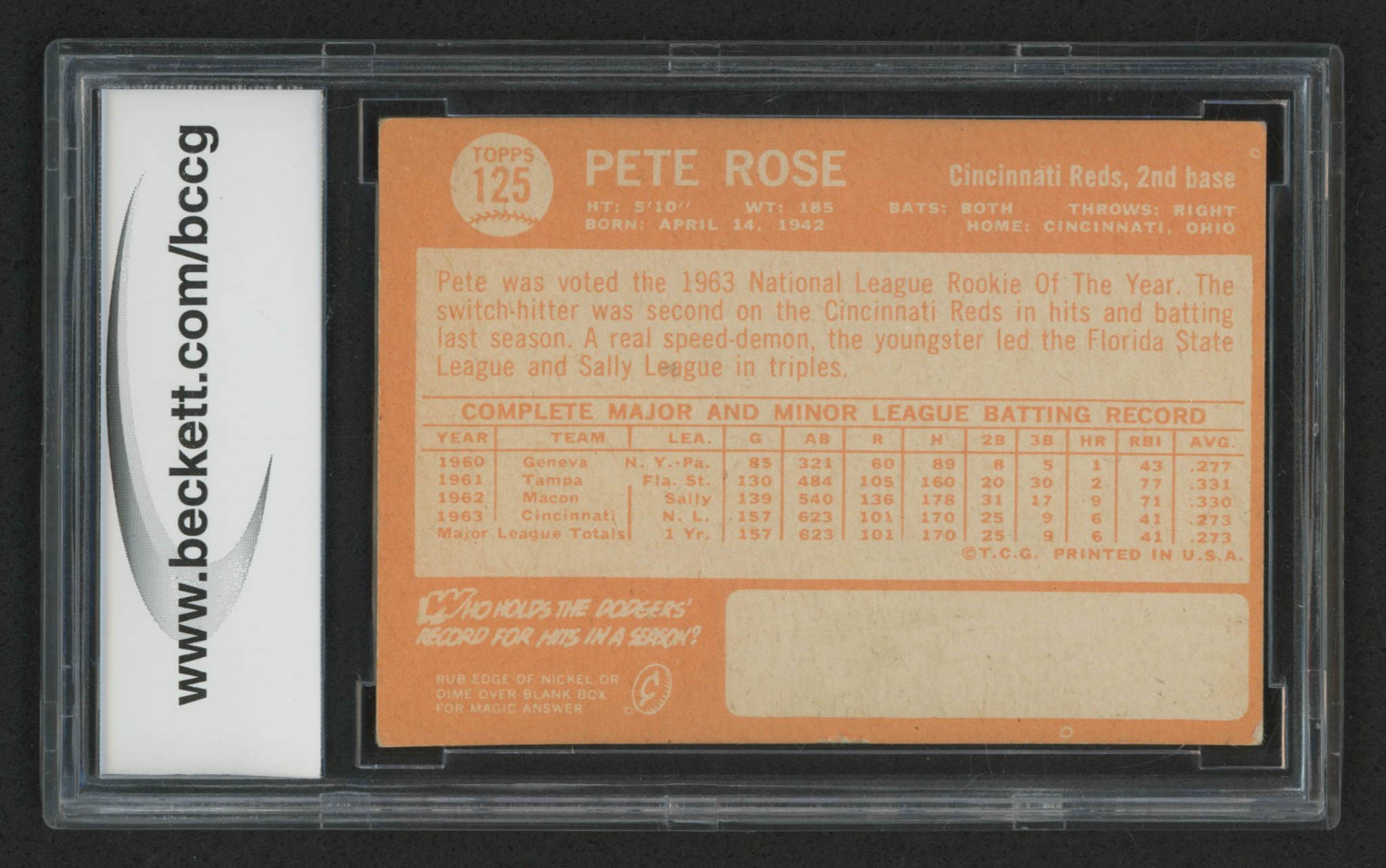 1964 Topps #125 Pete Rose (BCCG 7)