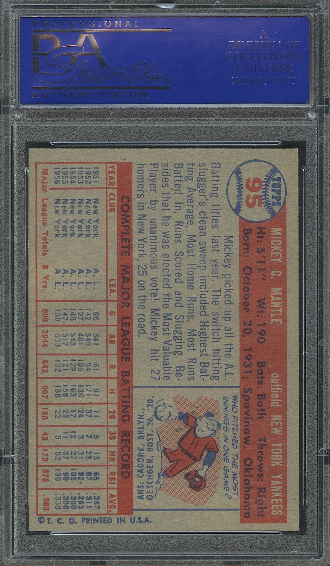 1957 Topps #95 Mickey Mantle (PSA 8)