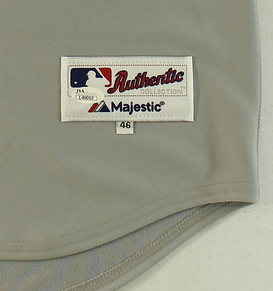 Majestic on-field style jersey. Everything sewn on, size 46. Hand-signed and inscribed in blue felt-tip pen by Joe Garagiola. The autograph includes an official James Spence Authentication (JSA) hologram for authenticity purposes.