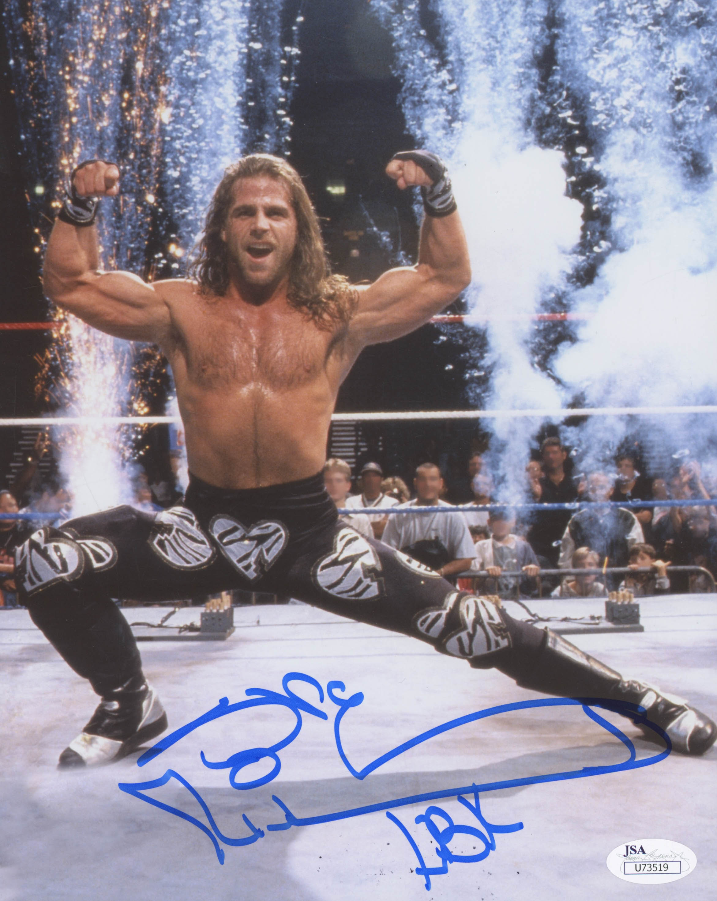 Photo measures 8" x 10" in size and has been hand-signed and inscribed in blue felt-tip pen by Shawn Michaels.