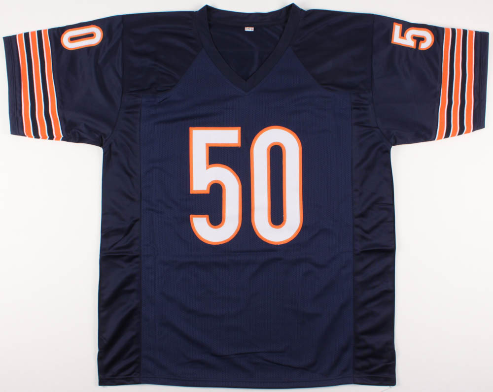 Custom on-field style jersey. Everything is sewn on, size XL. Hand-signed and inscribed in black felt-tip pen by Mike Singletary (HOF).