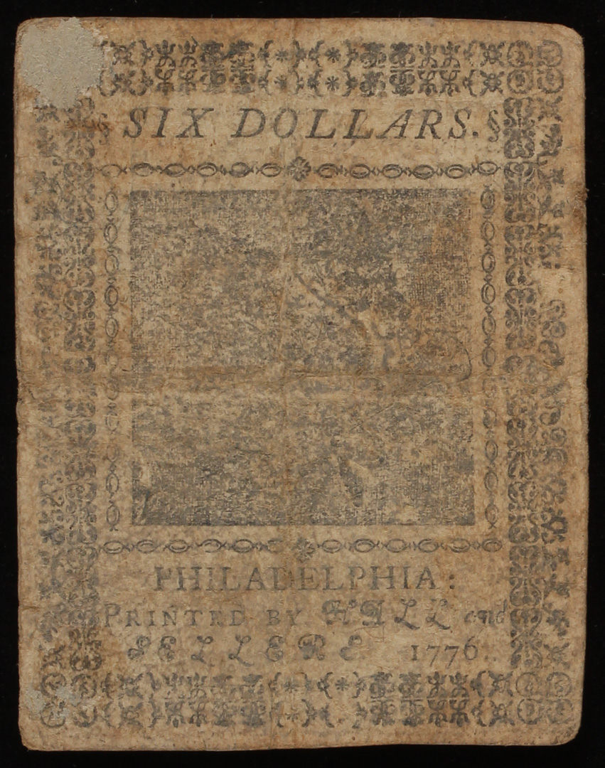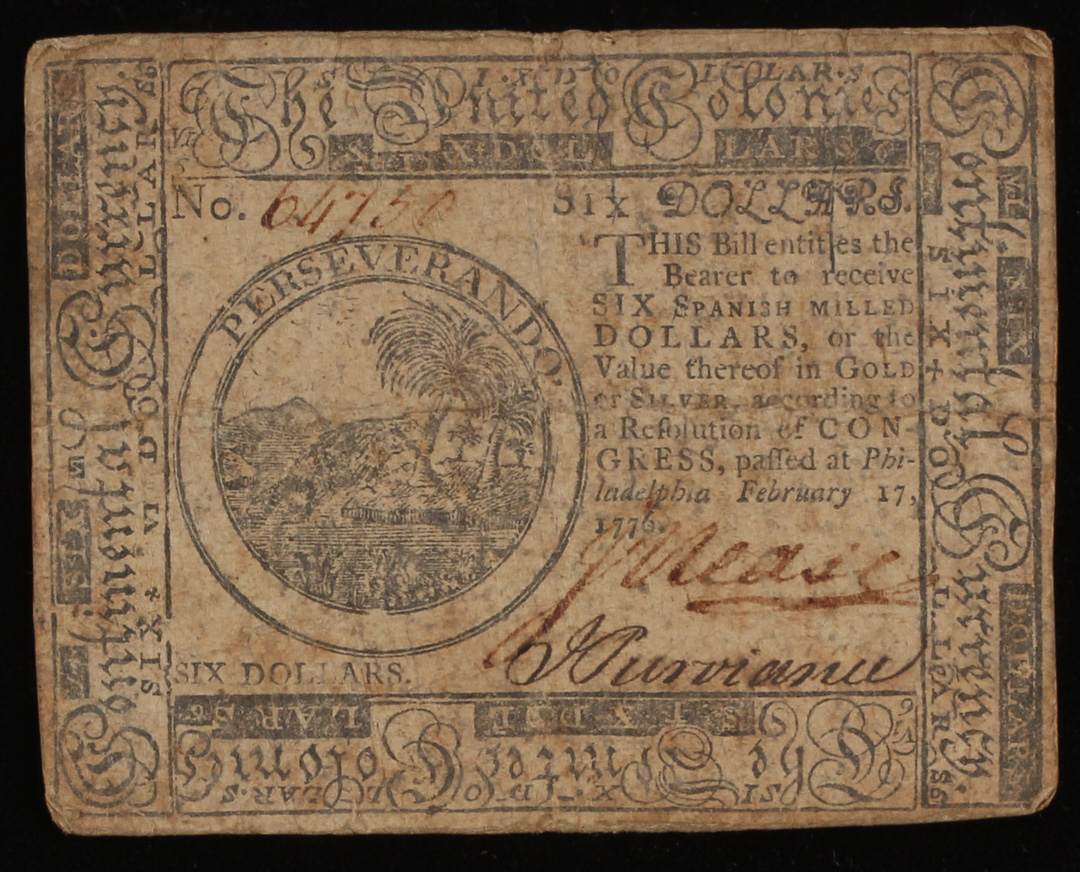 1776 $6 Six Dollars Continental Colonial Currency Note