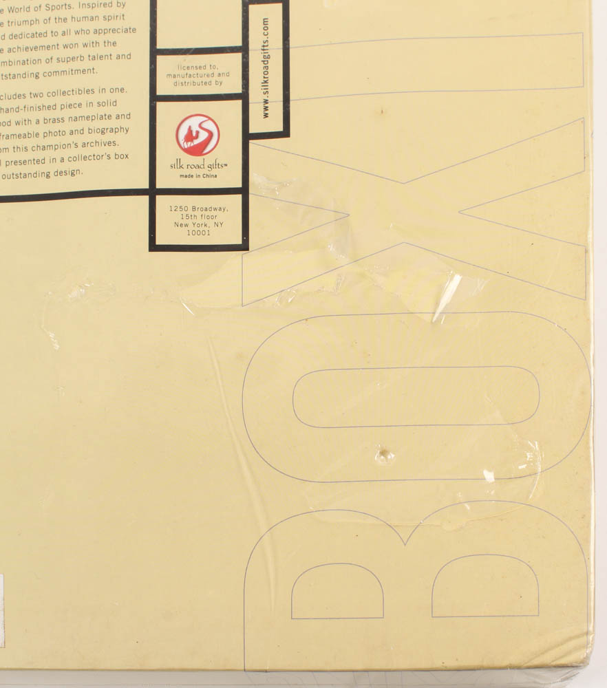 Silk Road Gifts Commemorative Hand-Print Replica Plaque measures 10" x 15" in size. The plaque comes with its original box and is unopened. Please note, Muhammad Ali's (D. 2016, HOF) signature is a facsimile.