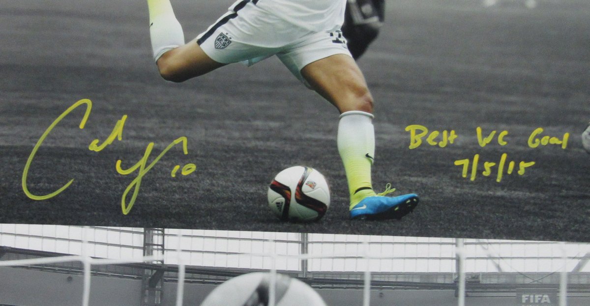 Photo measures 16" x 20" in size and has been hand-signed and inscribed in yellow paint pen by Carli Lloyd.