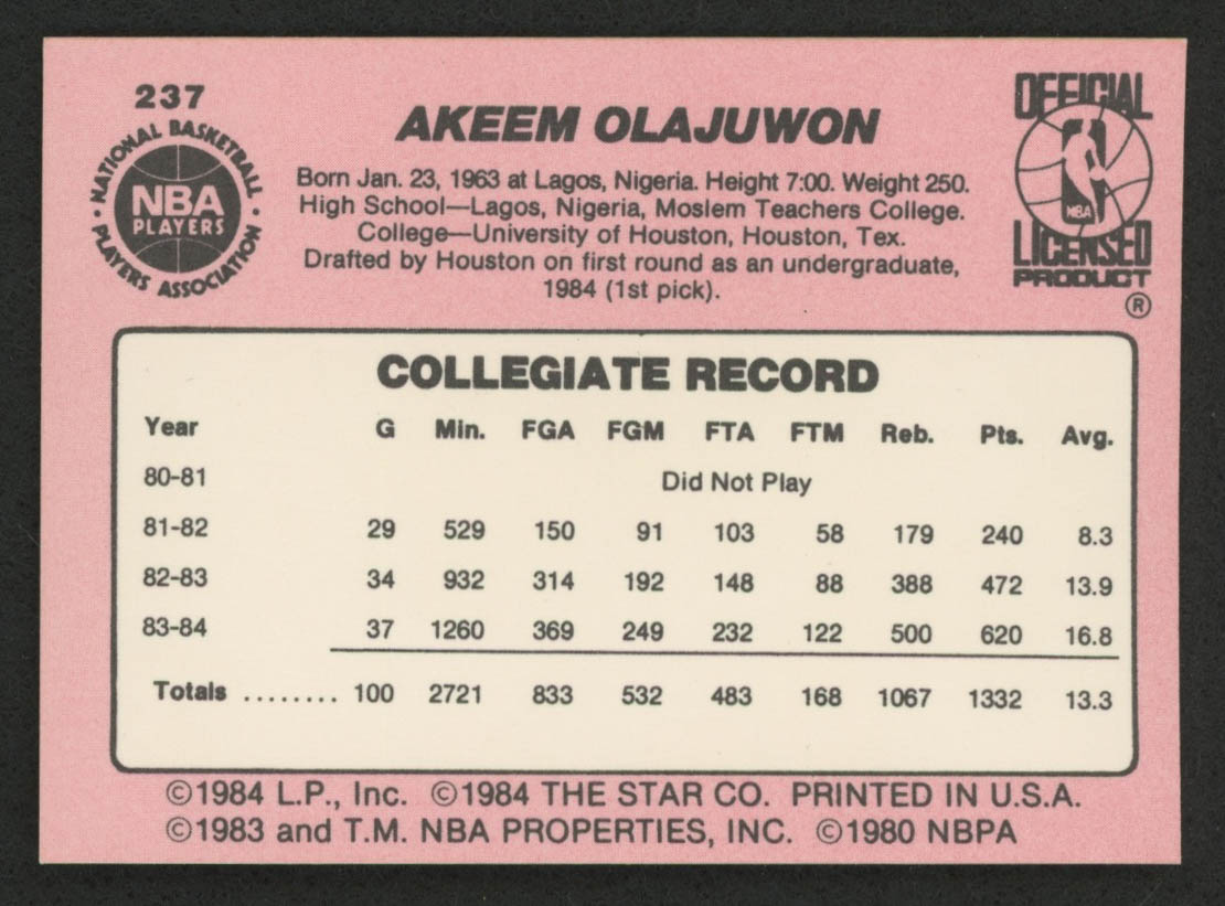1984-85 Star #237 Hakeem Olajuwon RC !