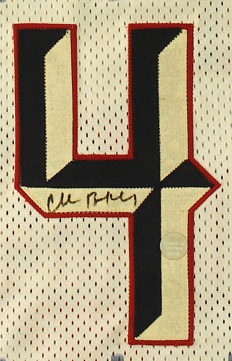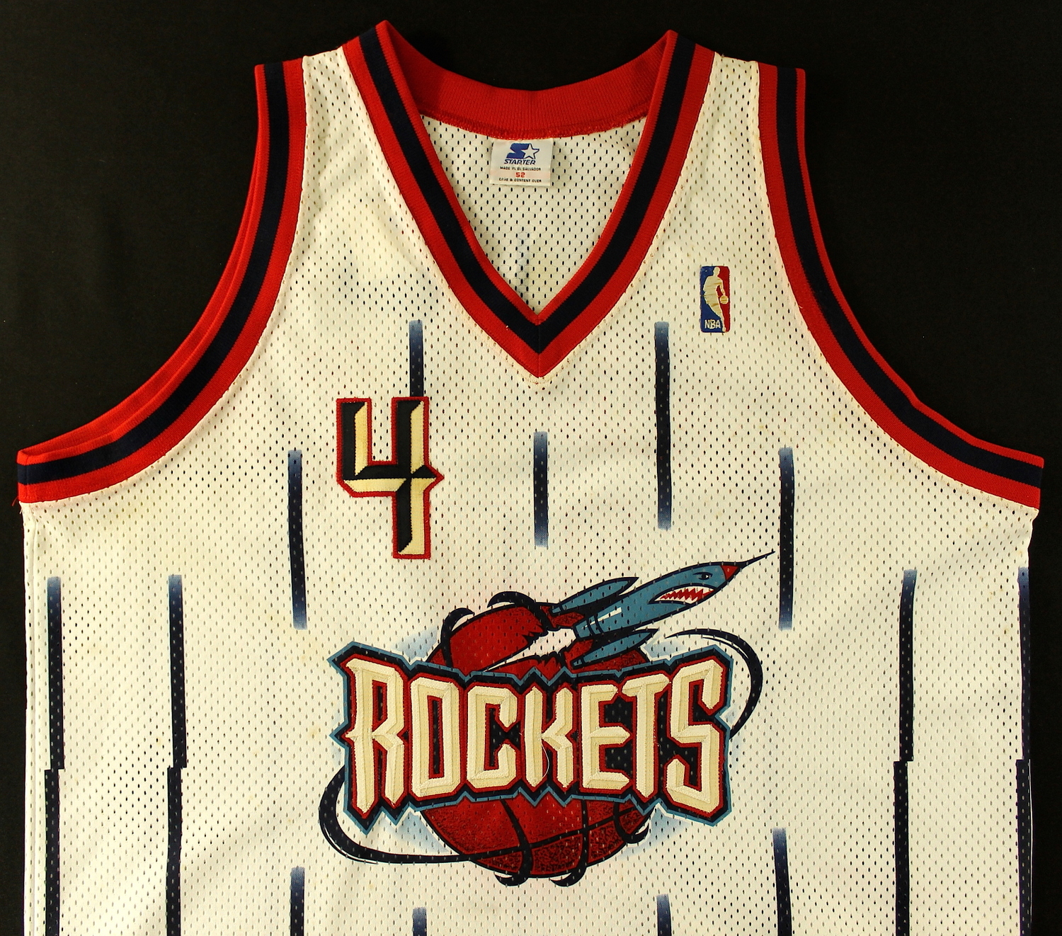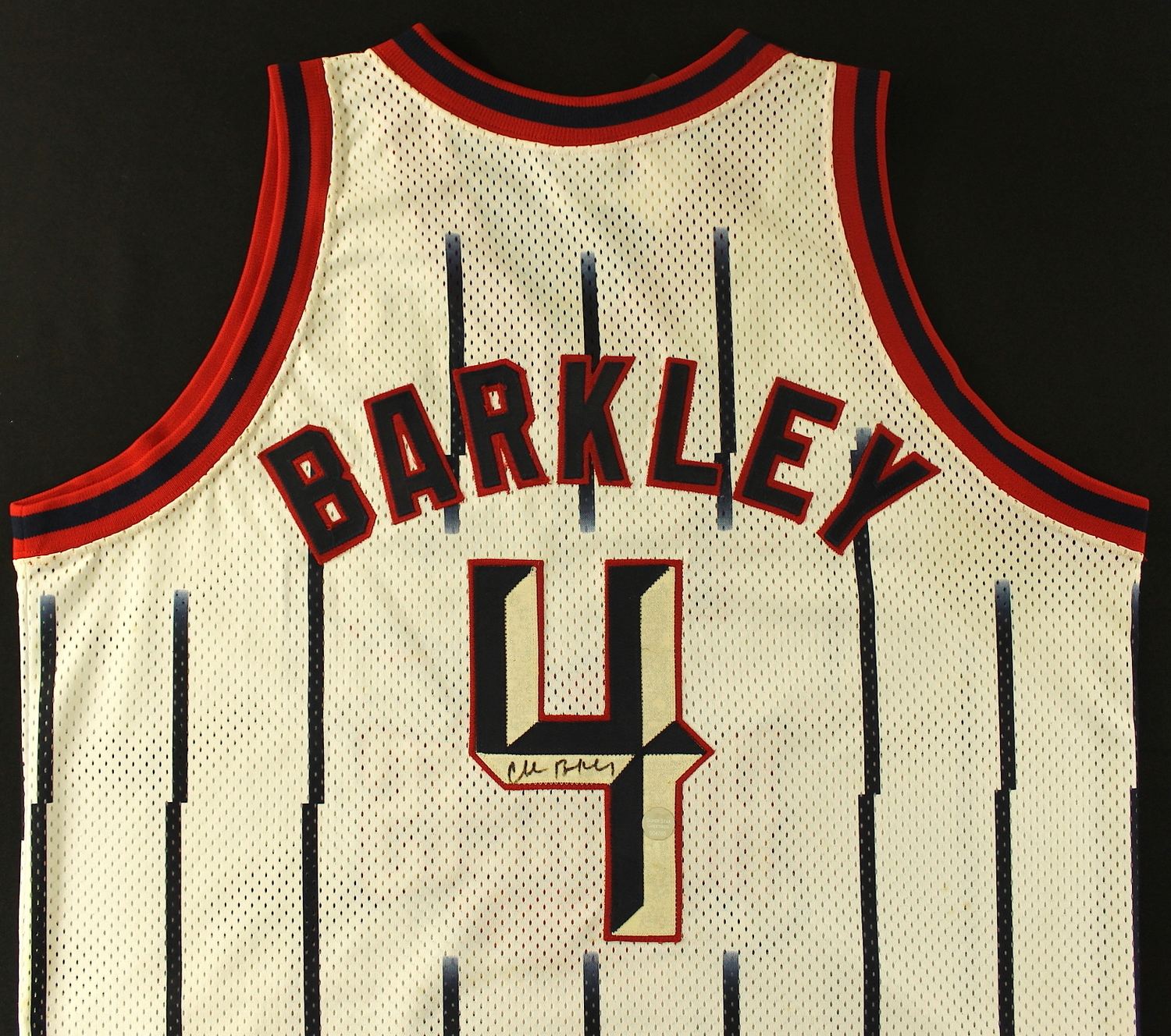 Starter on-court jersey. Everything sewn on, size 52. Hand-signed in black felt-tip pen by Charles Barkley (Suns, 76ers, Rockets HOF). The autograph includes an official Super Star Greetings hologram for authenticity purposes.