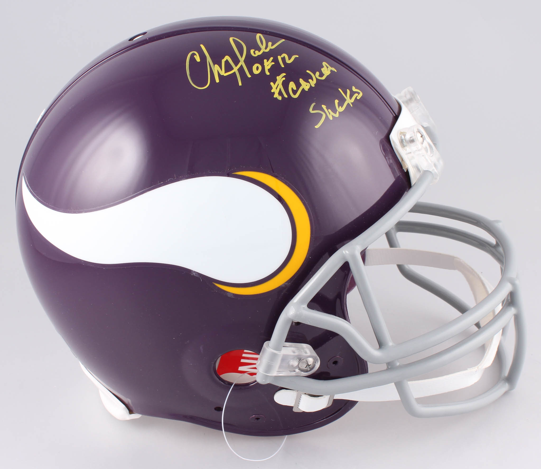 Riddell Minnesota Vikings full-size replica throwback helmet. Hand-signed and inscribed by Chris Doleman (HOF).