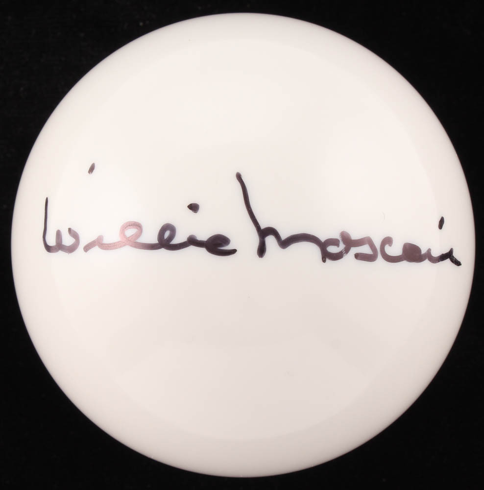 Pool Cue Ball has been hand-signed in black felt-tip pen by Willie Mosconi (D. 1993, HOF).